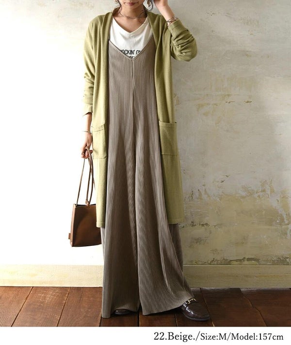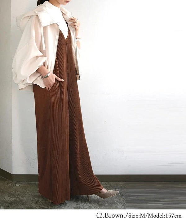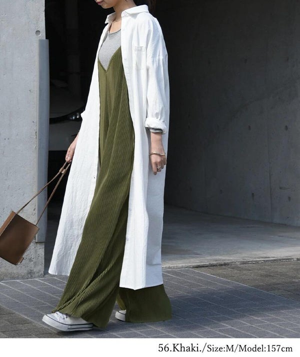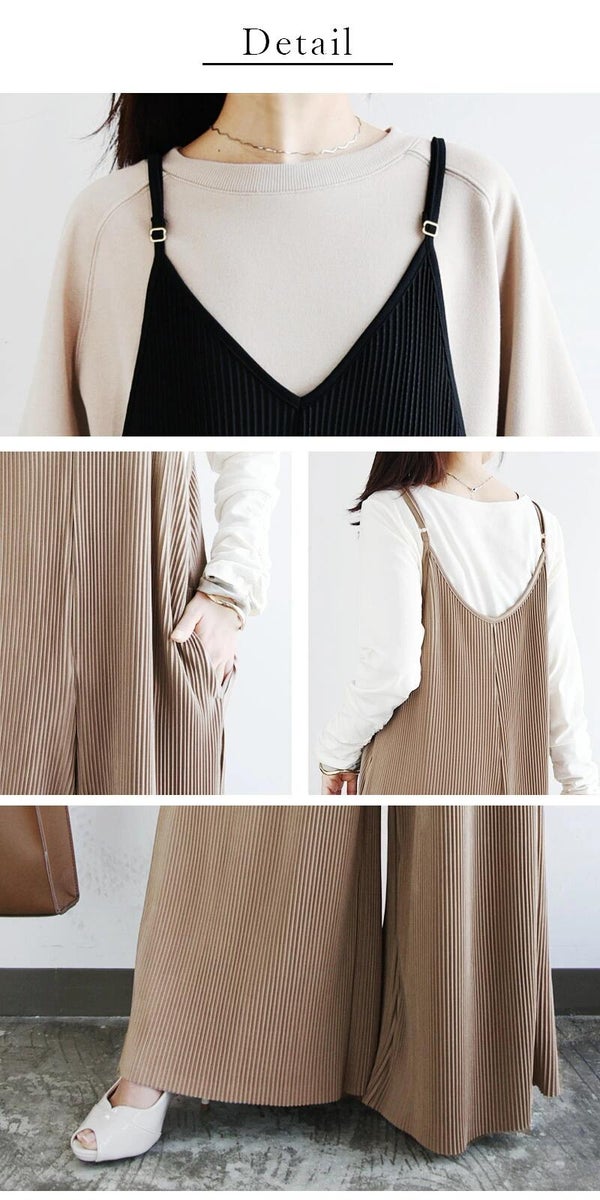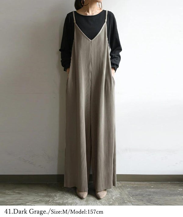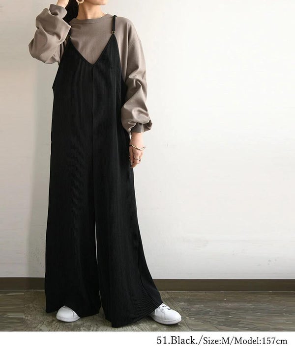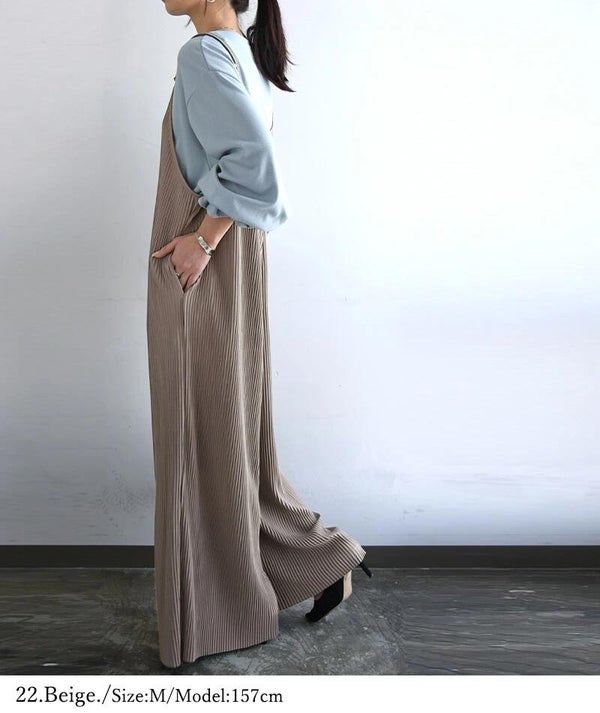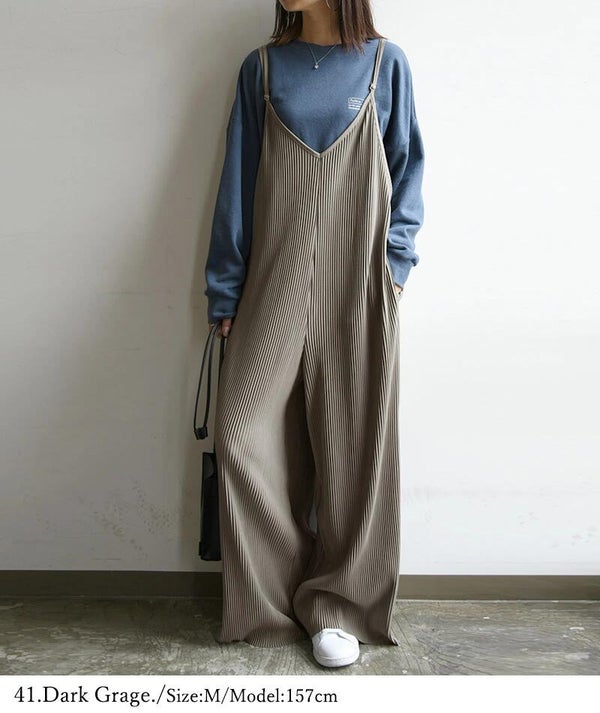 - セルフカットプリーツワイドサロペット M L LL 【メール便対応可】