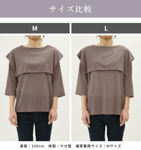 - 2WAY楊柳ビッグカラーブラウス M L 【メール便対応可】