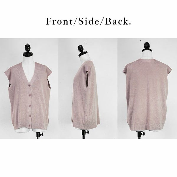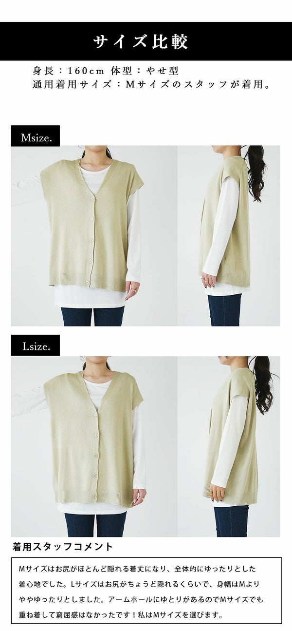Vネックボタンニットベスト M L 【メール便対応可】