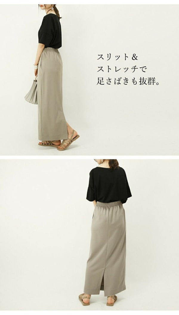スカート レディース 春夏 ナロースカート ボトムス ロング丈 ロングスカート 梨地 ストレッチ 伸縮性 シワになりにくい シンプル 無地 すっきり 上品 大人可愛い お洒落 ウエストゴム 楽ちん ブラック ダークベージュ サックス 黒 水色 andit_ and it_ andit ANDIT_ ANDIT あんどいっと アンドイット SS 新作 NEW カジュアル ナチュラル きれいめ 大人可愛い 大人女子 お洒落 トレンド シンプル ニュアンス M L Mサイズ Lサイズ M~L M-L ゆったり 楽ちん ラフ 体型カバー ぽっちゃり プチプラ ファッション レディースファッション ママ服 20 30 40 50 20代 30代 40代 50代