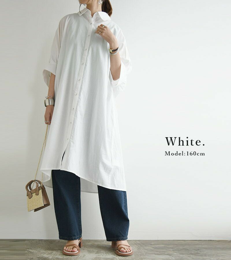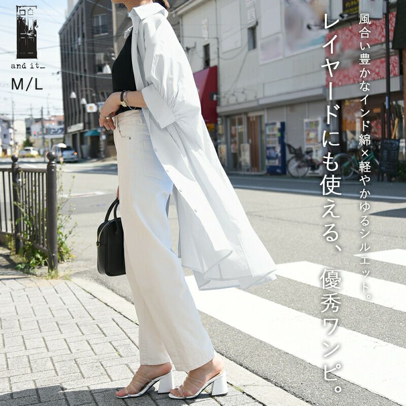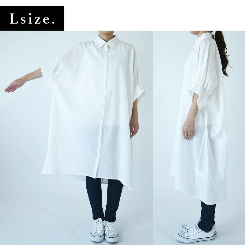 - インド綿ドルマンシャツワンピース M L 【メール便対応可】