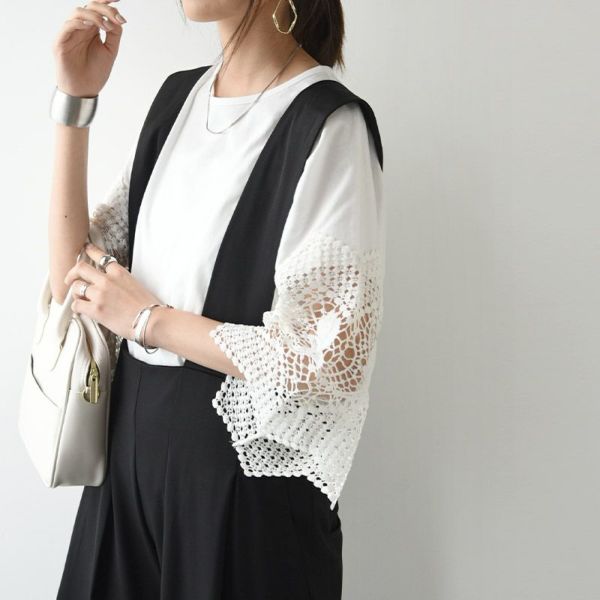 カットソー レディース 春夏 半袖 トップス Tシャツ ティーシャツ tシャツ レース 涼感 涼しい 透け感 肌見せ 大人可愛い 五分袖 二の腕カバー 上品 きれいめ オフホワイト ブラック アッシュピンク ピンク 黒 白 シンプル andit_ and it_ andit ANDIT_ ANDIT あんどいっと アンドイット SS 新作 NEW カジュアル ナチュラル きれいめ きれいめカジュアル 大人可愛い 大人女子 お洒落 トレンド シンプル ニュアンス M L Mサイズ Lサイズ M~L M-L ゆったり 楽ちん ラフ 体型カバー ぽっちゃり プチプラ ファッション レディースファッション ママ服 20 30 40 50 20代 30代 40代 50代