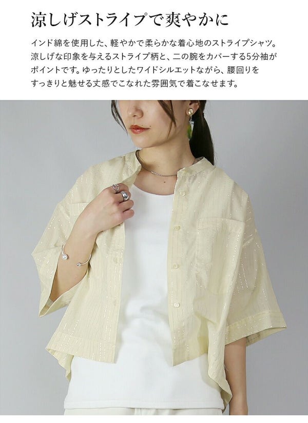 シャツ レディース インド ストライプ ストライプシャツ ワイド 5分袖 トップス 羽織り 半袖 五分袖 透け感 涼感 爽やか 二の腕カバー ショート丈 オーバーサイズ インド綿 薄手 ベージュ ブラック オフホワイト 白 黒 新作 NEW ニュー カジュアル かじゅある ナチュラル なちゅらる 女性 綺麗 綺麗目 綺麗め きれいめ キレイメ キレイめ きれい キレイ 可愛い かわいい カワイイ カッコいい かっこいい 格好良い カッコイイ 大人 オトナ おとな オトナカワイイ おとなかわいい 大人可愛い 大人女子 おとなじょし オトナジョシ お洒落 おしゃれ オシャレ トレンド 旬 とれんど 流行 こなれ感 こなれ 高見え 上質 上品 シンプル ニュアンス ラクチン らくちん 楽ちん 楽 動きやすい ゆったり ゆる ゆったりサイズ ゆるカジ ゆるい ゆるファッション 体型カバー プラスサイズ 大きいサイズ ビッグ ビック big ビックシルエット ビッグシルエット ビックサイズ ビッグサイズ オーバーサイズ オーバー フリーサイズ フリー S M L LL 2L XL 3L XXL LLL 着痩せ 着回し 華奢見せ 華奢見え ベーシック プチプラ ファッション レディースファッション レディファ カジュアルコーデ 大人コーデ オトナコーデ 大人カジュアルコーデ きれいめコーデ きれいめカジュアルコーデ オフィスカジュアルコーデ オフィスカジュアル オフィス テレワーク リモートワーク リモート オンライン飲み会 飲み会 打ち上げ ご飯会 ランチ おうち時間 お家時間 デート お出かけ フェス リゾート ビーチ 海 旅行 飛行機 パーティー パーティ 韓国ファッション 韓国コーデ 韓国風 韓国 母の日 母のひ プレゼント ギフト 贈り物 クリスマス 誕生日 春 夏 秋 冬 春夏 秋冬 andit_ and it_ andit ANDIT_ ANDIT あんどいっと アンドイット 20 30 40 50 60 20代 30代 40代 50代 60代