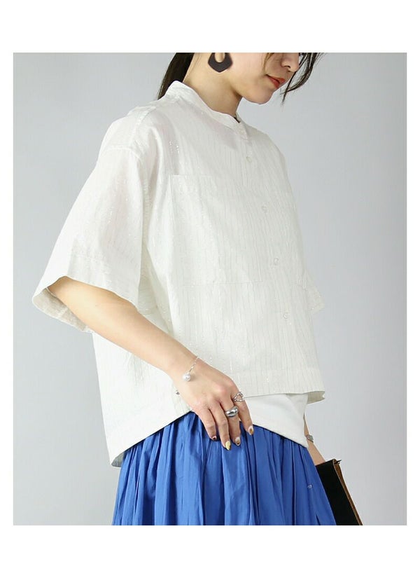 インドストライプワイド5分袖シャツは、涼感と爽やかさを兼ね備えた大人のカジュアルスタイルに最適な一枚です。インド綿を使用した薄手の素材は、透け感がありながらも上品な印象を与えます。5分袖のデザインは二の腕をさりげなくカバーし、ショート丈が軽やかな印象を演出します。ベージュ、ブラック、オフホワイトの3色展開で、春夏のコーディネートにぴったりです。ラフでありながらもお洒落な雰囲気を楽しめます。