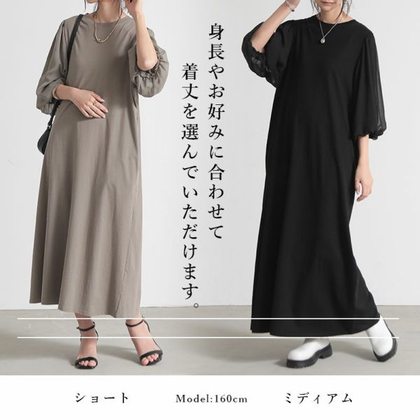身長に合わせて着丈が選べる!透け感のあるバルーンスリーブが大人可愛い楽ちんワンピ―ス♪