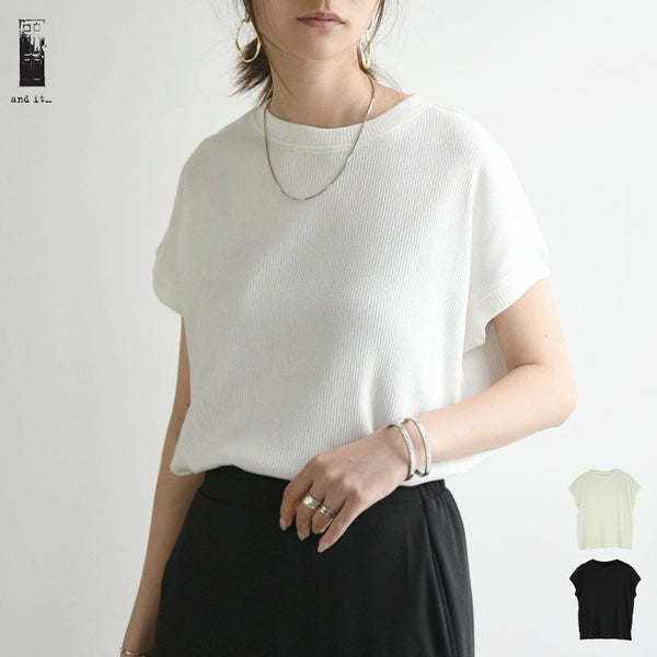 カットソー レディース 春 夏 リブ 凹凸 フレンチスリーブ シンプル トップス ストレッチ 伸縮性 ストレスフリー 綿100% コットン シンプル 着回し オフホワイト ブラック ネイビー ベージュ ダークグレージュ andit_ and it_ andit ANDIT_ ANDIT あんどいっと アンドイット SS 新作 NEW カジュアル ナチュラル きれいめ 大人可愛い 大人女子 お洒落 トレンド シンプル ニュアンス M Mサイズ L Lサイズ 春服 夏服 ゆったり 楽ちん ラフ 体型カバー ぽっちゃり プチプラ ファッション レディースファッション ママ服 20 30 40 50 20代 30代 40代 50代