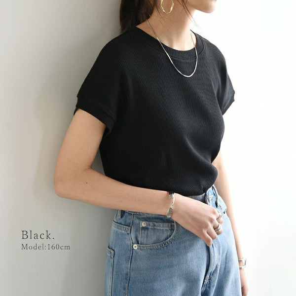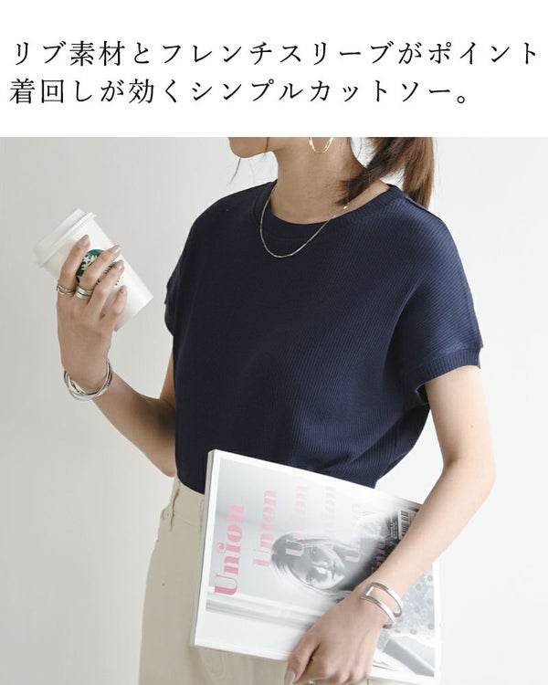 リブフレンチスリーブシンプルカットソー M L 【メール便対応可】