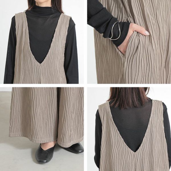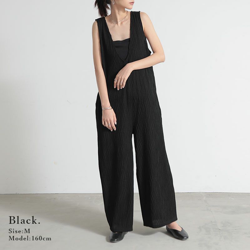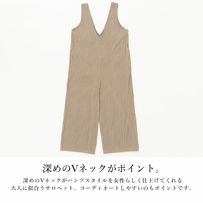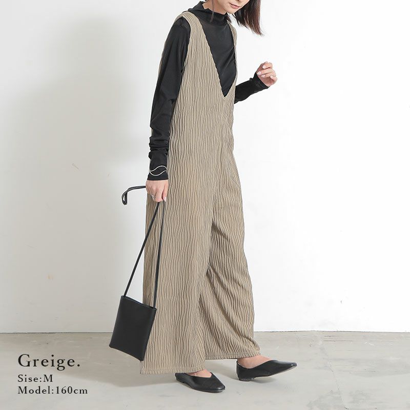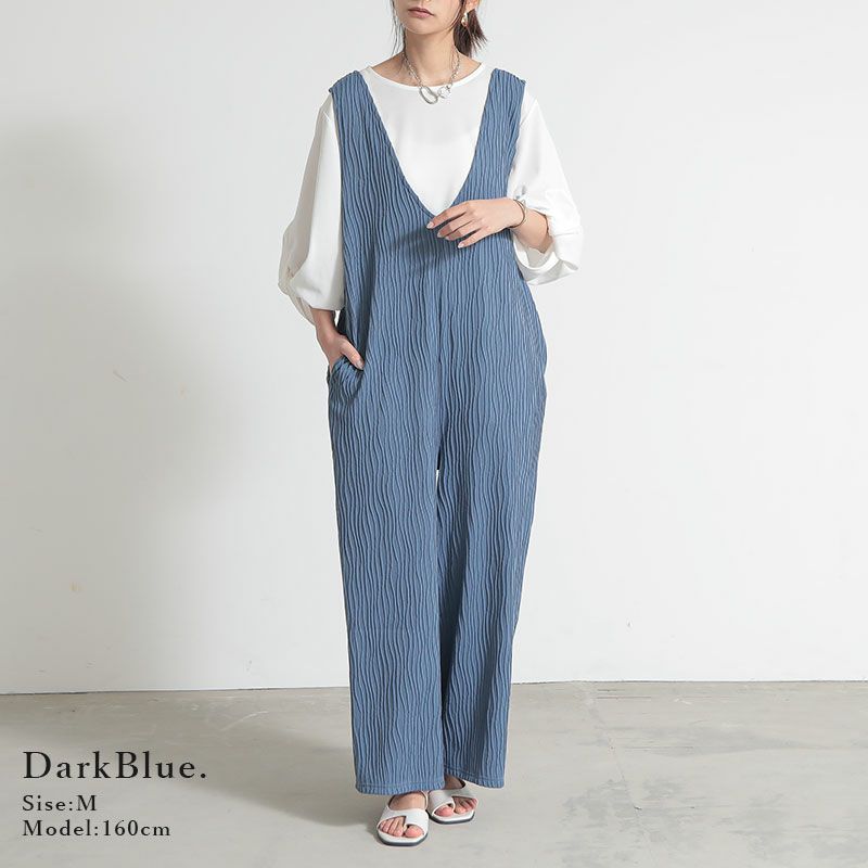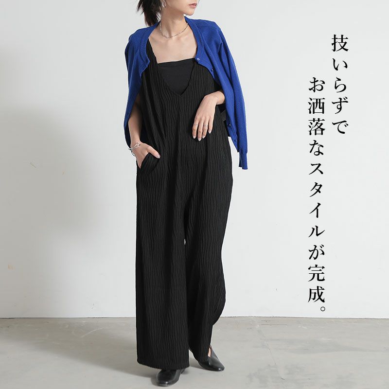 オールインワン レディース 春夏 リップル ストライプ 立体感 リップル Vネック ボトムス パンツ ワイドパンツ 伸縮性 伸びる 上品 綺麗め 大人可愛い お洒落 重ね着 レイヤード オーバーオール サロペット つなぎ ダークブルー グレージュ ブラック 黒 ママ マタニティ M L Mサイズ Lサイズ andit_ and it_ andit ANDIT_ ANDIT あんどいっと アンドイット SS 新作 NEW カジュアル ナチュラル きれいめ 大人可愛い 大人女子 お洒落 トレンド シンプル ニュアンス ゆったり 楽ちん ラフ 体型カバー ぽっちゃり プチプラ ファッション レディースファッション ママ服 20 30 40 50 20代 30代 40代 50代