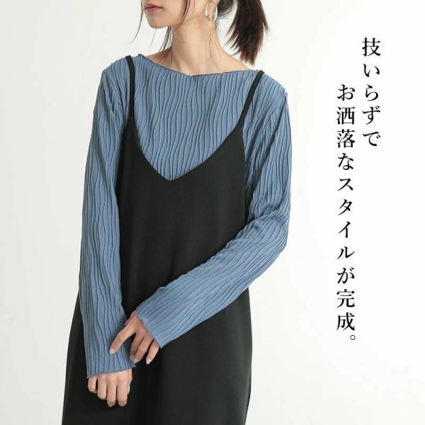 トップス カットソー レディース 春夏 長袖 リップル 立体感ストライプ ボートネック 伸縮性 伸びる 楽ちん 上品 綺麗め 重ね着 レイヤード ダークブルー グレージュ ブラック 黒 M L Mサイズ Lサイズ andit_ and it_ andit ANDIT_ ANDIT あんどいっと アンドイット SS 新作 NEW カジュアル ナチュラル きれいめ 大人可愛い 大人女子 お洒落 トレンド シンプル ニュアンスゆったり 楽ちん ラフ 体型カバー ぽっちゃり プチプラ ファッション レディースファッション ママ服 20 30 40 50 20代 30代 40代 50代