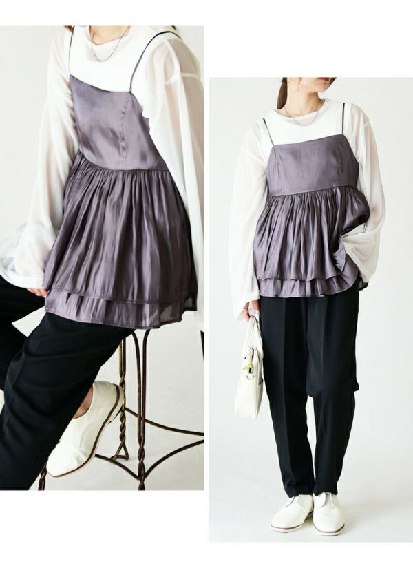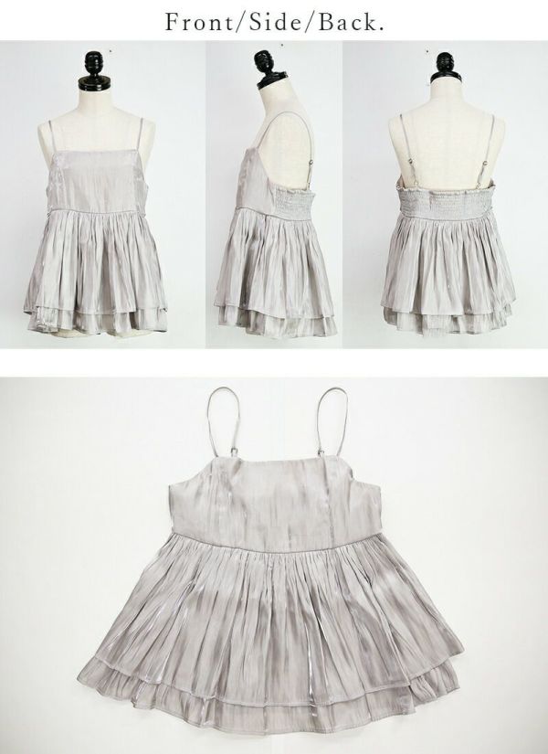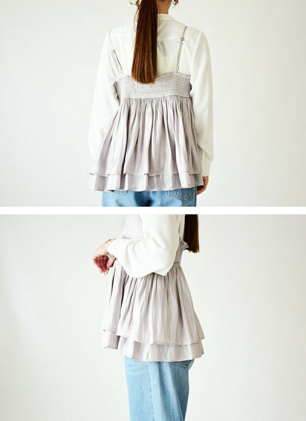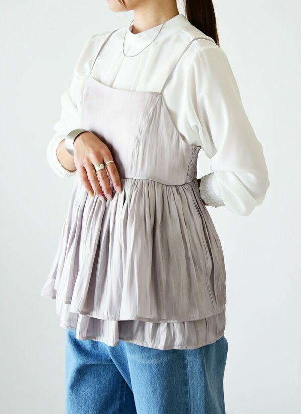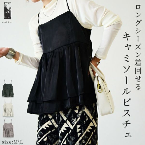 トップス キャミ レディース シャイニー サテン キャミソール ビスチェ キャミソールビスチェ 重ね着 レイヤード 光沢 上品 きれいめ お洒落 大人可愛い ギャザー 2段 シャーリング 調節可能 ロングシーズン ボリューム ふんわり ブラック グレージュ チャコール 黒 春 夏 秋 冬 24aw SS, AW, M L えむ える エム エル andit_ and it_ andit ANDIT_ ANDIT あんどいっと アンドイット AW 新作 NEW カジュアル ナチュラル きれいめ 大人可愛い 大人女子 お洒落 トレンド シンプル ニュアンス プチプラ ファッション レディースファッション 20 30 40 50 20代 30代 40代 50代