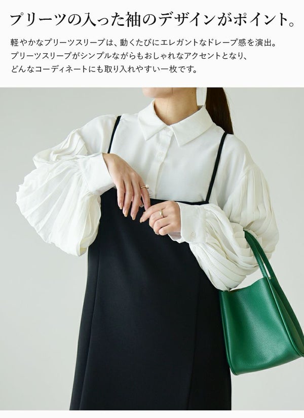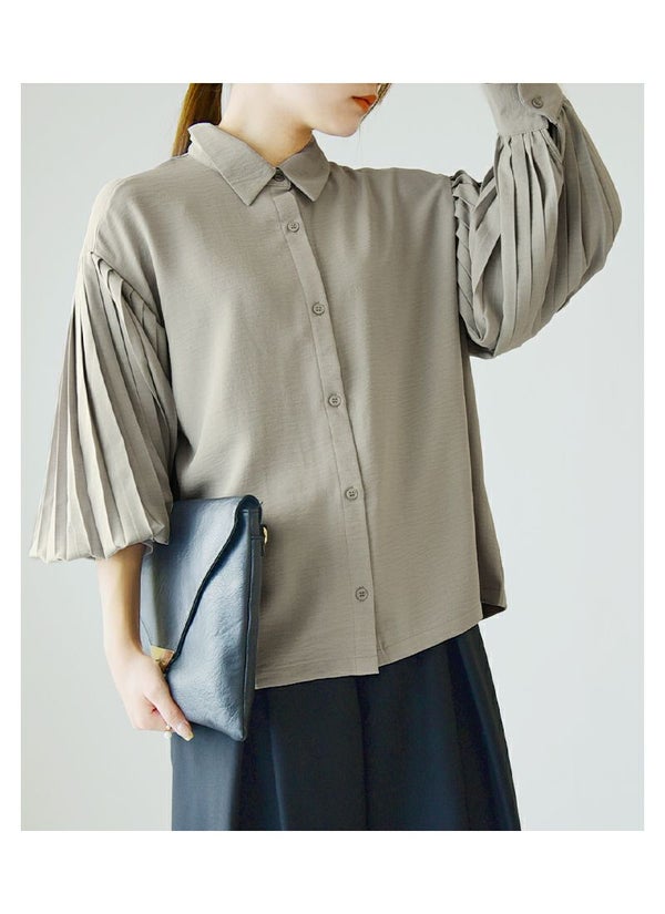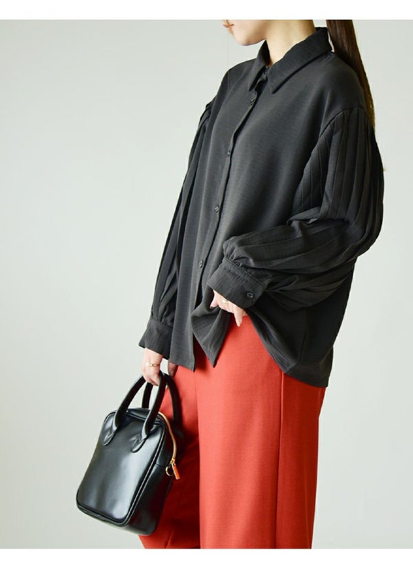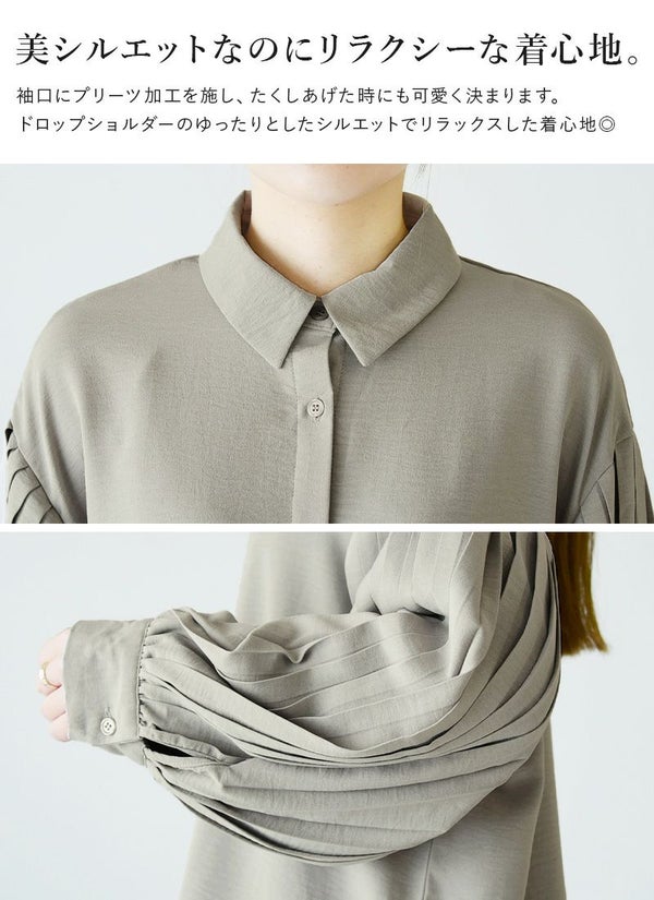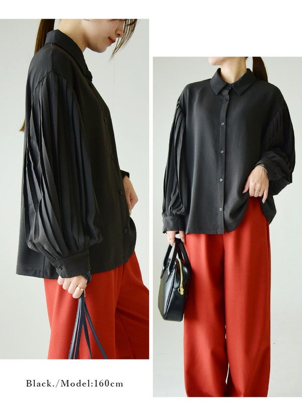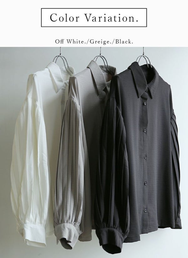 トップス シャツ レディース 長袖 プリーツスリーブ プリーツ シワになりにくい シワが目立たない ボリューム袖 ボリュームスリ―ブ上品 きれいめ 綺麗め ボタン 羽織り ゆったり 楽ちん ラフ オフホワイト ブラック グレージュ 白 黒 秋 冬 24aw AW, M L andit_ and it_ andit ANDIT_ ANDIT あんどいっと アンドイット 新作 NEW カジュアル ナチュラル きれいめ 大人可愛い 大人女子 お洒落 トレンド シンプル ニュアンス プチプラ ファッション レディースファッション 20 30 40 50 20代 30代 40代 50代