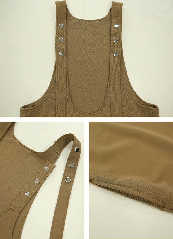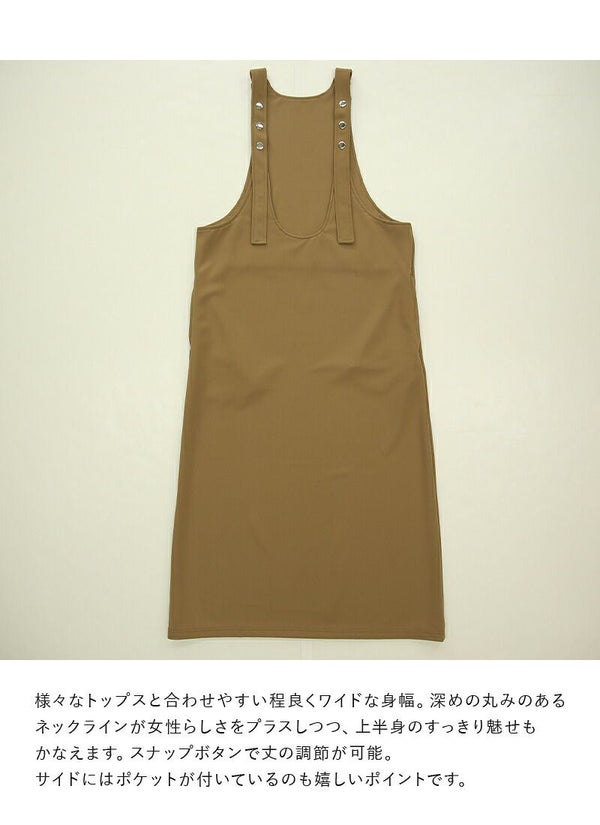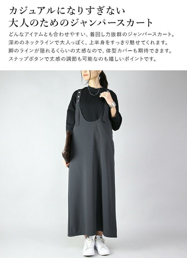 上半身のすっきり見せ!スナップボタンで丈が調節できる大人のジャンパースカート。