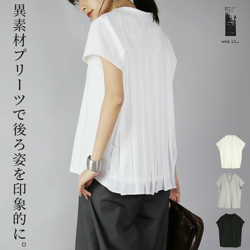 ブラウス レディース ポンチ バックプリーツ プリーツブラウス トップス 半袖 異素材 スキッパー すっきり ふんわり 軽やか オフィス 仕事 オフィスカジュアル オフホワイト ブラック ライトグレー 黒 白 新作 NEW ニュー カジュアル かじゅある ナチュラル なちゅらる 女性 綺麗 綺麗目 綺麗め きれいめ キレイメ キレイめ きれい キレイ 可愛い かわいい カワイイ カッコいい かっこいい 格好良い カッコイイ 大人 オトナ おとな オトナカワイイ おとなかわいい 大人可愛い 大人女子 おとなじょし オトナジョシ お洒落 おしゃれ オシャレ トレンド 旬 とれんど 流行 こなれ感 こなれ 高見え 上質 上品 シンプル ニュアンス ラクチン らくちん 楽ちん 楽 動きやすい ゆったり ゆる ゆったりサイズ ゆるカジ ゆるい ゆるファッション 体型カバー プラスサイズ 大きいサイズ ビッグ ビック big ビックシルエット ビッグシルエット ビックサイズ ビッグサイズ オーバーサイズ オーバー フリーサイズ フリー S M L LL 2L XL 3L XXL LLL 着痩せ 着回し 華奢見せ 華奢見え ベーシック プチプラ ファッション レディースファッション レディファ カジュアルコーデ 大人コーデ オトナコーデ 大人カジュアルコーデ きれいめコーデ きれいめカジュアルコーデ オフィスカジュアルコーデ オフィスカジュアル オフィス テレワーク リモートワーク リモート オンライン飲み会 飲み会 打ち上げ ご飯会 ランチ おうち時間 お家時間 デート お出かけ フェス リゾート ビーチ 海 旅行 飛行機 パーティー パーティ 韓国ファッション 韓国コーデ 韓国風 韓国 母の日 母のひ プレゼント ギフト 贈り物 クリスマス 誕生日 春 夏 秋 冬 春夏 秋冬 andit_ and it_ andit ANDIT_ ANDIT あんどいっと アンドイット 20 30 40 50 60 20代 30代 40代 50代 60代