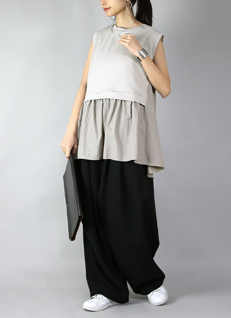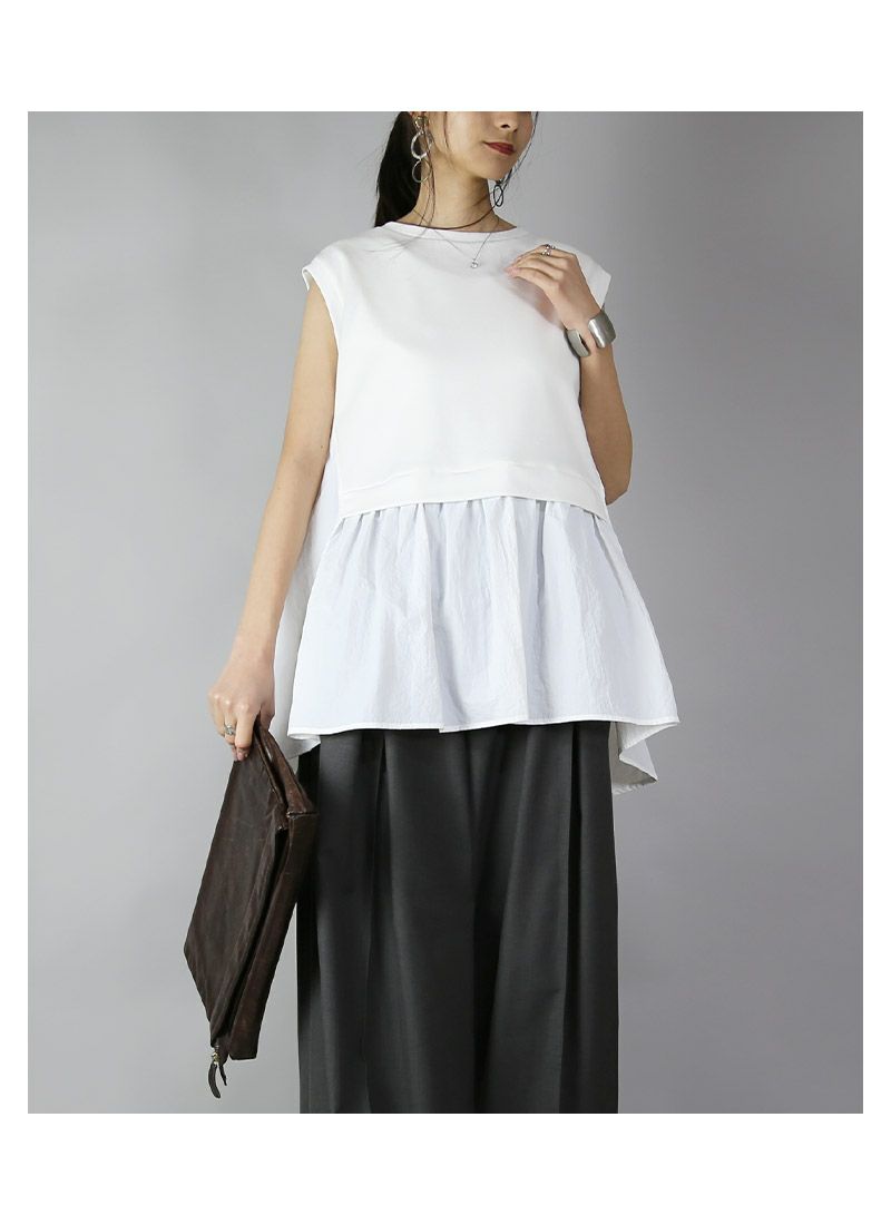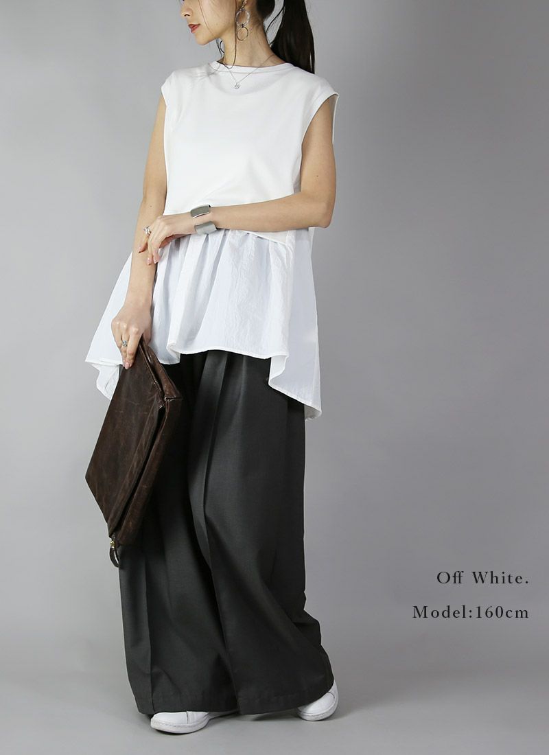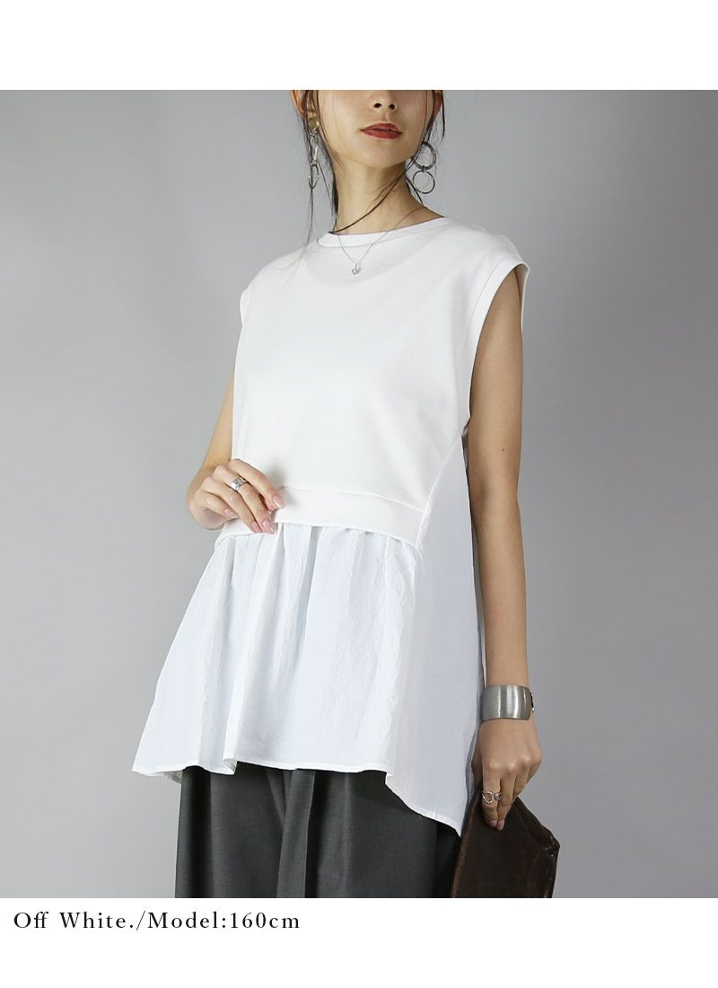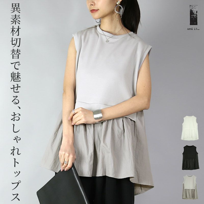 ブラウス レディース ポンチ ナイロン フレンチスリーブ トップス ノースリーブ 異素材 切替 Aライン ヒップカバー 重ね着 オフホワイト ブラック ライトグレー 黒 白 新作 NEW ニュー カジュアル かじゅある ナチュラル なちゅらる 女性 綺麗 綺麗目 綺麗め きれいめ キレイメ キレイめ きれい キレイ 可愛い かわいい カワイイ カッコいい かっこいい 格好良い カッコイイ 大人 オトナ おとな オトナカワイイ おとなかわいい 大人可愛い 大人女子 おとなじょし オトナジョシ お洒落 おしゃれ オシャレ トレンド 旬 とれんど 流行 こなれ感 こなれ 高見え 上質 上品 シンプル ニュアンス ラクチン らくちん 楽ちん 楽 動きやすい ゆったり ゆる ゆったりサイズ ゆるカジ ゆるい ゆるファッション 体型カバー プラスサイズ 大きいサイズ ビッグ ビック big ビックシルエット ビッグシルエット ビックサイズ ビッグサイズ オーバーサイズ オーバー フリーサイズ フリー S M L LL 2L XL 3L XXL LLL 着痩せ 着回し 華奢見せ 華奢見え ベーシック プチプラ ファッション レディースファッション レディファ カジュアルコーデ 大人コーデ オトナコーデ 大人カジュアルコーデ きれいめコーデ きれいめカジュアルコーデ オフィスカジュアルコーデ オフィスカジュアル オフィス テレワーク リモートワーク リモート オンライン飲み会 飲み会 打ち上げ ご飯会 ランチ おうち時間 お家時間 デート お出かけ フェス リゾート ビーチ 海 旅行 飛行機 パーティー パーティ 韓国ファッション 韓国コーデ 韓国風 韓国 母の日 母のひ プレゼント ギフト 贈り物 クリスマス 誕生日 春 夏 秋 冬 春夏 秋冬 andit_ and it_ andit ANDIT_ ANDIT あんどいっと アンドイット 20 30 40 50 60 20代 30代 40代 50代 60代