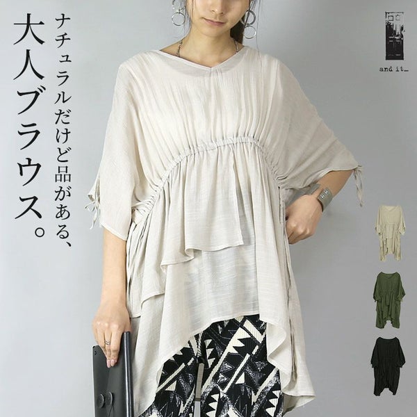 ブラウス レディース スラブドロストブラウストップス 半袖 5分袖 五分袖 ギャザー ふんわり 女性らしい ドロスト ナチュラル 立体的 薄手 軽やか スラブ生地 涼感 透け感 涼しい お尻が隠れる ヒップカバー ブラック オフベージュ カーキ 黒 緑 新作 NEW ニュー カジュアル かじゅある ナチュラル なちゅらる 女性 綺麗 綺麗目 綺麗め きれいめ キレイメ キレイめ きれい キレイ 可愛い かわいい カワイイ カッコいい かっこいい 格好良い カッコイイ 大人 オトナ おとな オトナカワイイ おとなかわいい 大人可愛い 大人女子 おとなじょし オトナジョシ お洒落 おしゃれ オシャレ トレンド 旬 とれんど 流行 こなれ感 こなれ 高見え 上質 上品 シンプル ニュアンス ラクチン らくちん 楽ちん 楽 動きやすい ゆったり ゆる ゆったりサイズ ゆるカジ ゆるい ゆるファッション 体型カバー プラスサイズ 大きいサイズ ビッグ ビック big ビックシルエット ビッグシルエット ビックサイズ ビッグサイズ オーバーサイズ オーバー フリーサイズ フリー S M L LL 2L XL 3L XXL LLL 着痩せ 着回し 華奢見せ 華奢見え ベーシック プチプラ ファッション レディースファッション レディファ カジュアルコーデ 大人コーデ オトナコーデ 大人カジュアルコーデ きれいめコーデ きれいめカジュアルコーデ オフィスカジュアルコーデ オフィスカジュアル オフィス テレワーク リモートワーク リモート オンライン飲み会 飲み会 打ち上げ ご飯会 ランチ おうち時間 お家時間 デート お出かけ フェス リゾート ビーチ 海 旅行 飛行機 パーティー パーティ 韓国ファッション 韓国コーデ 韓国風 韓国 母の日 母のひ プレゼント ギフト 贈り物 クリスマス 誕生日 春 夏 秋 冬 春夏 秋冬 andit_ and it_ andit ANDIT_ ANDIT あんどいっと アンドイット 20 30 40 50 60 20代 30代 40代 50代 60代