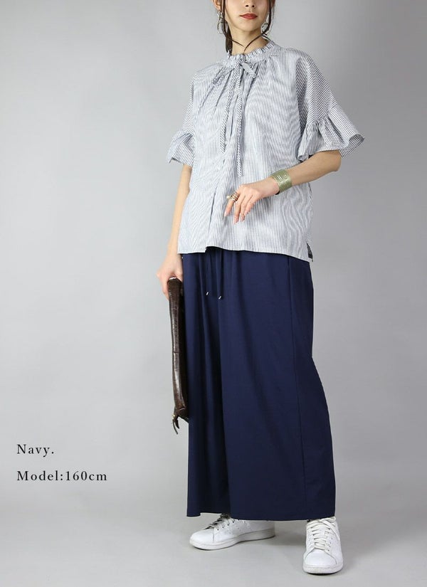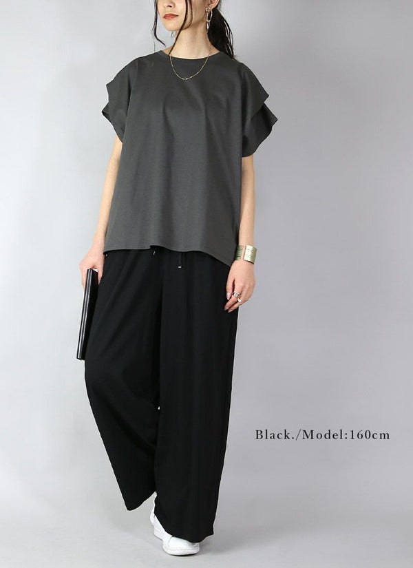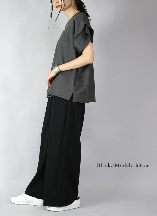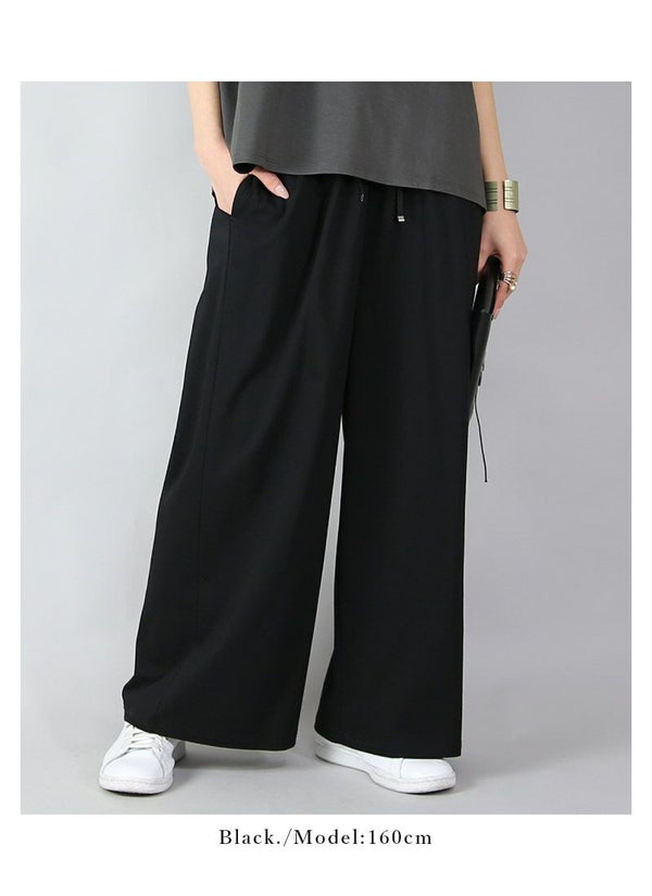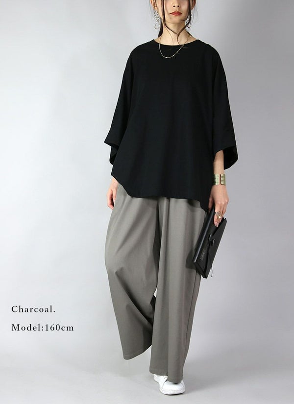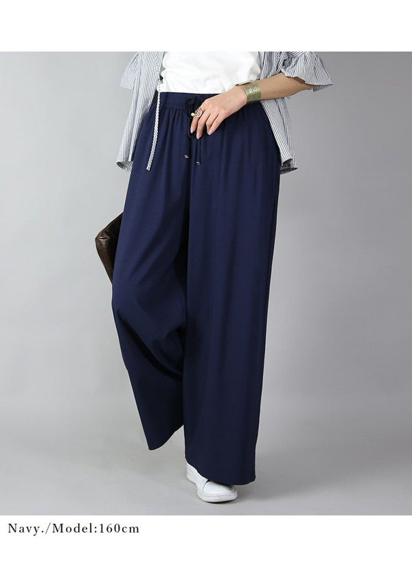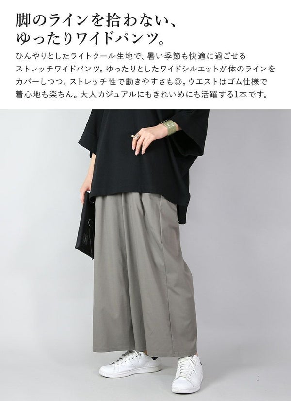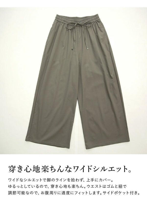脚のラインを拾わないゆったり大人ワイドシルエット。ひんやり心地良く快適な穿き心地に◎