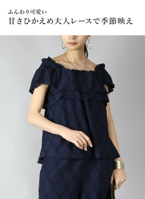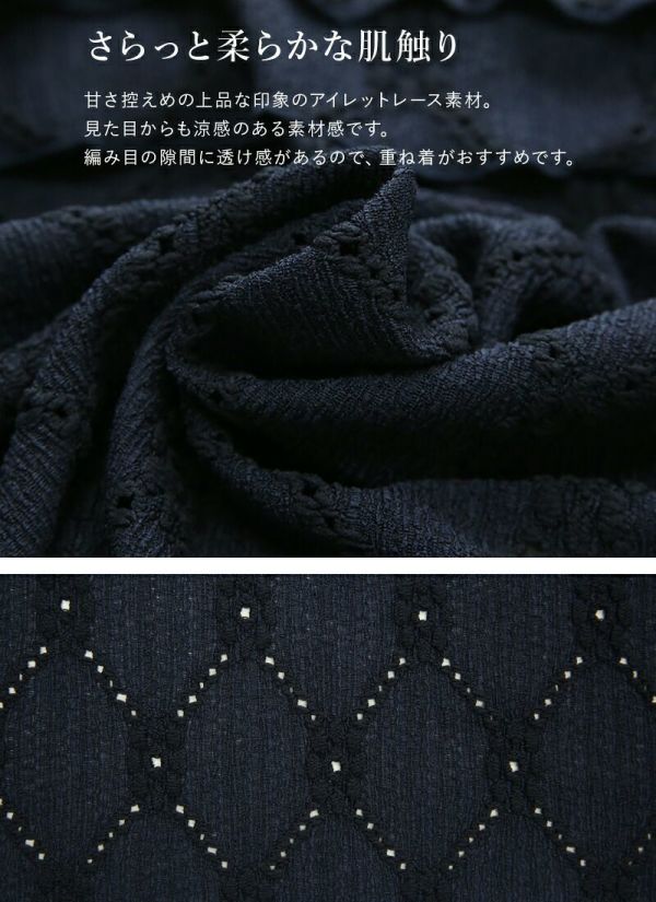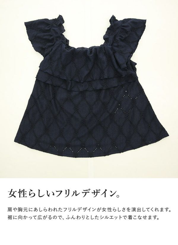 レディース アイレット レース フリル トップス 大人可愛い 上品 綺麗め 涼やか 涼感 半袖 大人レース アイレットレース 甘さ控えめ 透け感 ふんわり黒 紺 ブラック ダークネイビー新作 NEW ニュー カジュアル かじゅある ナチュラル なちゅらる 女性 綺麗 綺麗目 綺麗め きれいめ キレイメ キレイめ きれい キレイ 可愛い かわいい カワイイ カッコいい かっこいい 格好良い カッコイイ 大人 オトナ おとな オトナカワイイ おとなかわいい 大人可愛い 大人女子 おとなじょし オトナジョシ お洒落 おしゃれ オシャレ トレンド 旬 とれんど 流行 こなれ感 こなれ 高見え 上質 上品 シンプル ニュアンス ラクチン らくちん 楽ちん 楽 動きやすい ゆったり ゆる ゆったりサイズ ゆるカジ ゆるい ゆるファッション 体型カバー プラスサイズ 大きいサイズ ビッグ ビック big ビックシルエット ビッグシルエット ビックサイズ ビッグサイズ オーバーサイズ オーバー フリーサイズ フリー S M L LL 2L XL 3L XXL LLL 着痩せ 着回し 華奢見せ 華奢見え ベーシック プチプラ ファッション レディースファッション レディファ カジュアルコーデ 大人コーデ オトナコーデ 大人カジュアルコーデ きれいめコーデ きれいめカジュアルコーデ オフィスカジュアルコーデ オフィスカジュアル オフィス テレワーク リモートワーク リモート オンライン飲み会 飲み会 打ち上げ ご飯会 ランチ おうち時間 お家時間 デート お出かけ フェス リゾート ビーチ 海 旅行 飛行機 パーティー パーティ 韓国ファッション 韓国コーデ 韓国風 韓国 母の日 母のひ プレゼント ギフト 贈り物 クリスマス 誕生日 春 夏 秋 冬 春夏 秋冬 andit_ and it_ andit ANDIT_ ANDIT あんどいっと アンドイット 20 30 40 50 60 20代 30代 40代 50代 60代