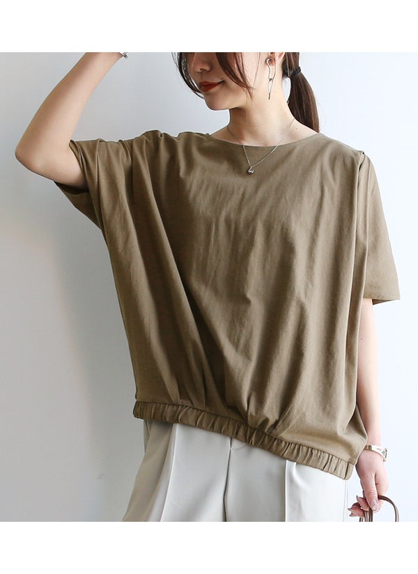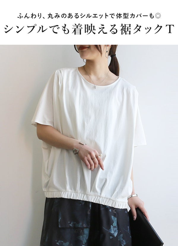 裾タック×ゴムで自然な立体感が生まれ着るだけでサマになるシルエット。ゆったりドルマンで体型カバーも叶う優秀Tシャツ。