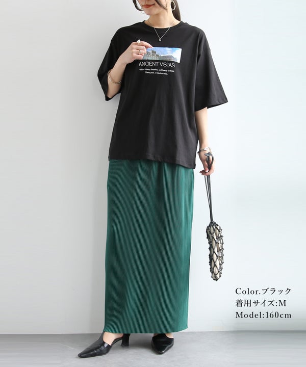 さりげないフォトプリントで大人っぽく着こなせる一枚。