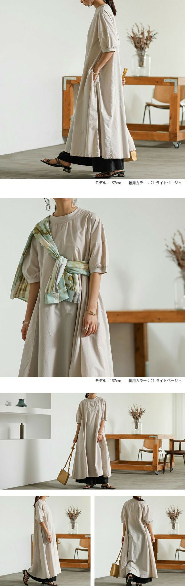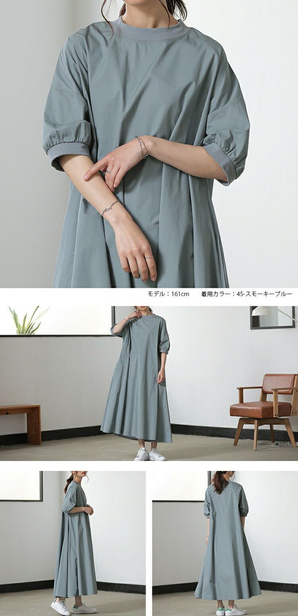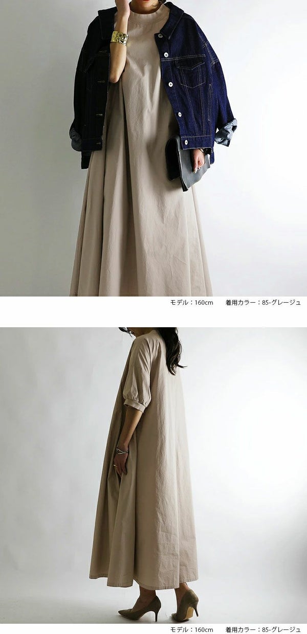 この半袖リブ付きAラインワンピースは、落ち着いた風合いで大人の女性にぴったりの一枚です。首元の切替リブが抜け感を演出し、袖先のリブがアクセントとなり、上品さと可愛らしさを兼ね備えています。かなりのAラインシルエットが特徴で、着用するだけで美しいシルエットを実現します。春から秋にかけて、1枚でさらりと着こなせるフリーサイズのデザインが魅力です。
