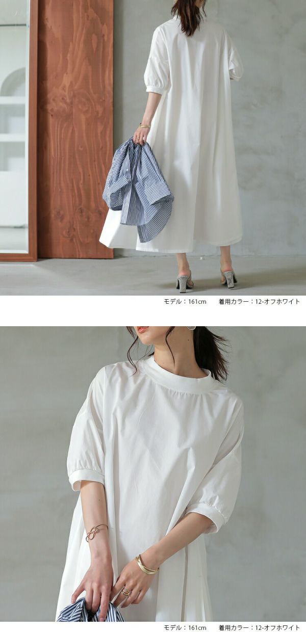 首元から裾にかけてふわっと広がるaラインがきれい。大人っぽくきれいめシルエットが楽しめる魅力のワンピース 。張りのある生地で高見え効果もあって、1枚でも着れる安心のしっかり感。