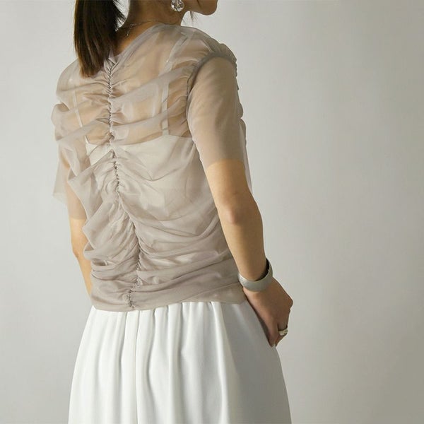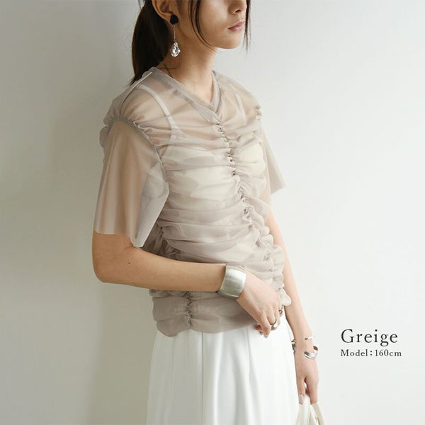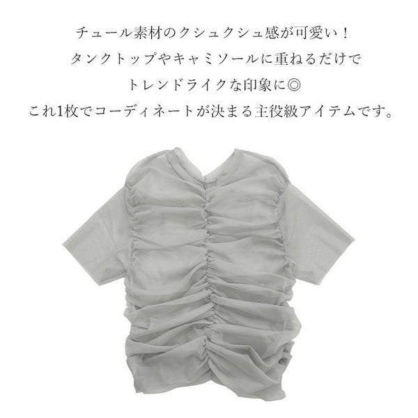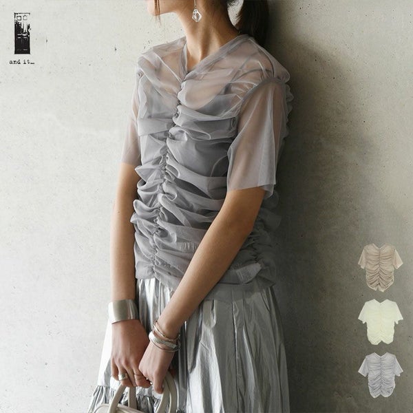 トップス レディース 春 夏 チュール シャーリング Tシャツ ティーシャツ シアー 透け感 涼感 涼しい 半袖 トレンド お洒落 大人可愛い 個性的 上品 きれいめ 綺麗め ふんわり アイボリー グレー グレージュ andit_ and it_ andit ANDIT_ ANDIT あんどいっと アンドイット SS 新作 NEW カジュアル ナチュラル きれいめ 大人可愛い 大人女子 お洒落 トレンド シンプル ニュアンス M Mサイズ ゆったり 楽ちん ラフ 体型カバー ぽっちゃり プチプラ ファッション レディースファッション ママ服 20 30 40 50 20代 30代 40代 50代