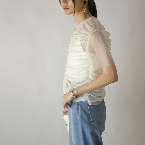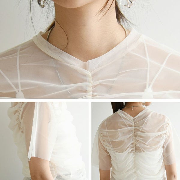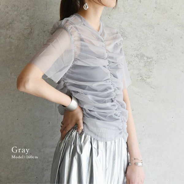 お洒落度アップが叶う!透け感とシャーリングがマッチした存在感のある1枚。