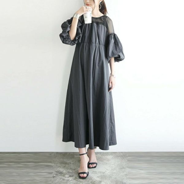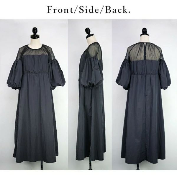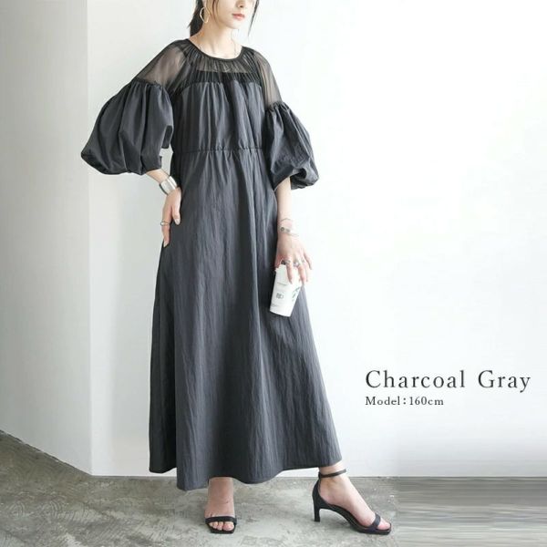 ワンピース レディース タフタ チュール ドッキング 異素材 ロング丈 ロングワンピ シアー 透け感 涼感 ボリュームスリーブ ボリューム袖 ふんわり 大人可愛い 七分袖 7分袖 オケージョン パーティー 二次会 チャコールグレー ブラック 黒 M Mサイズ 春 夏 春服 夏服 andit_ and it_ andit ANDIT_ ANDIT あんどいっと アンドイット SS 新作 NEW カジュアル ナチュラル きれいめ 大人可愛い 大人女子 お洒落 トレンド シンプル ニュアンス ゆったり 楽ちん ラフ 体型カバー ぽっちゃり プチプラ ファッション レディースファッション ママ服 20 30 40 50 20代 30代 40代 50代