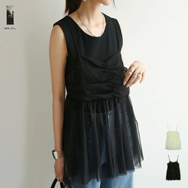 キャミソール レディース 春夏 ラメチュールキャミソール トップス 透け感 シアー ト 涼感 トレンド お洒落 重ね着 レイヤード ふんわり 大人可愛い きらきら チュールレース アイボリー ブラック 白 黒 andit_ and it_ andit ANDIT_ ANDIT あんどいっと アンドイット SS 新作 NEW カジュアル ナチュラル きれいめ 大人可愛い 大人女子 お洒落 トレンド シンプル ニュアンス M Mサイズ ゆったり 楽ちん ラフ 体型カバー ぽっちゃり プチプラ ファッション レディースファッション ママ服 20 30 40 50 20代 30代 40代 50代