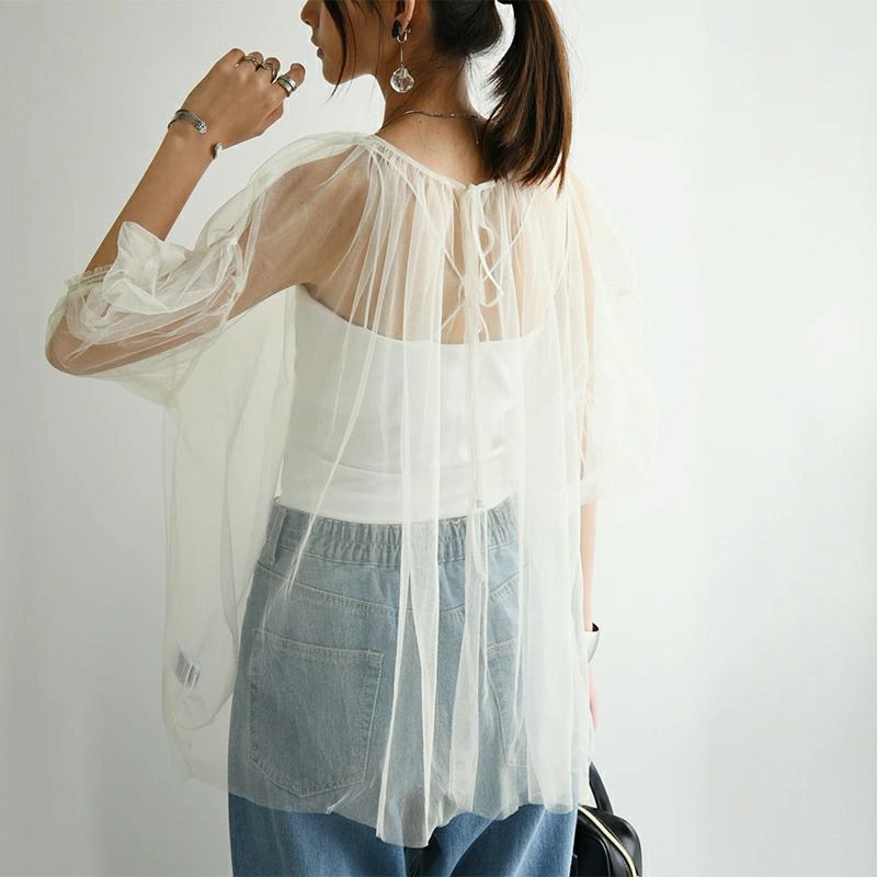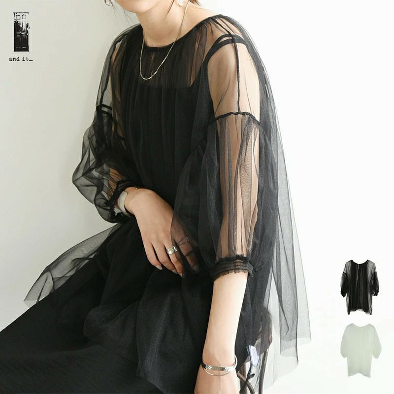 ブラウス レディース 春 夏 ラメ チュール ギャザーブラウス トップス 七分袖 7分袖 シアー 透け感 涼感 涼しい トレンド 大人可愛い 上品 きれいめ 綺麗め 重ね着 レイヤード ふんわり ボリューム アイボリー ブラック 白 黒 andit_ and it_ andit ANDIT_ ANDIT あんどいっと アンドイット SS 新作 NEW カジュアル ナチュラル きれいめ 大人可愛い 大人女子 お洒落 トレンド シンプル ニュアンス M Mサイズ ゆったり 楽ちん ラフ 体型カバー ぽっちゃり プチプラ ファッション レディースファッション ママ服 20 30 40 50 20代 30代 40代 50代