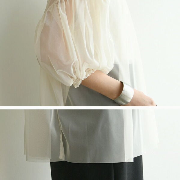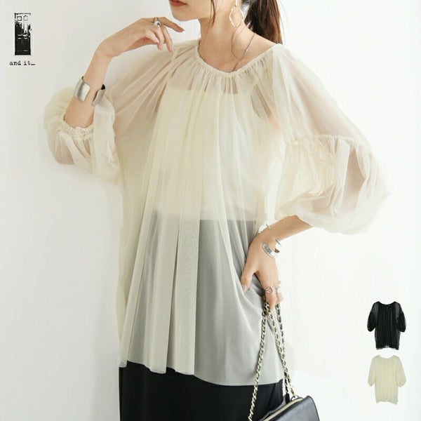 トップス ブラウス レディース チュール レイヤード ギャザー シアー 透け感 涼感 トレンド 重ね着 レイヤード 七分袖 7分袖 ふんわり ボリューム スリーブ ボリューム袖 アイボリー ブラック 白 黒 M Mサイズ 春 夏 春服 夏服 andit_ and it_ andit ANDIT_ ANDIT あんどいっと アンドイット SS 新作 NEW カジュアル ナチュラル きれいめ 大人可愛い 大人女子 お洒落 トレンド シンプル ニュアンス ゆったり 楽ちん ラフ 体型カバー ぽっちゃり プチプラ ファッション レディースファッション ママ服 20 30 40 50 20代 30代 40代 50代