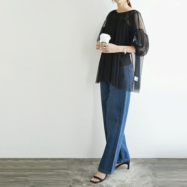 たっぷりギャザーでふんわりシルエット♪透け感が上品なチュール素材でトレンド感アップ!