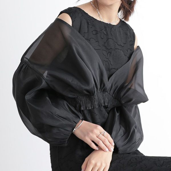 5. オーガンジーショートジャケット+ノースリーブジャガードワンピース(2点セット) S M L 【メール便対応不可】