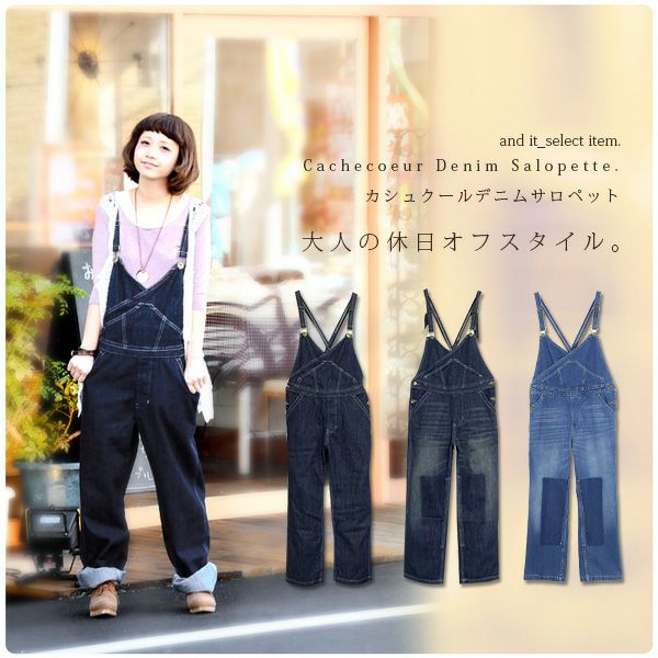 大人可愛いカジュアルデニムサロペット♪ゆるめのシルエットに、フロントはカシュクールデザイン!コーデの主役になるサロペットは必見です☆