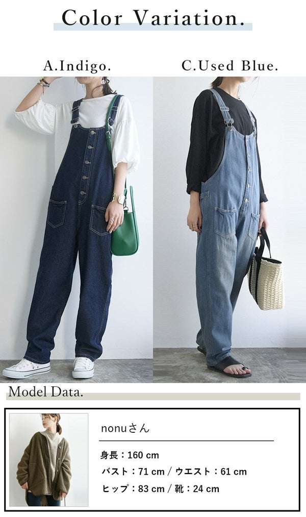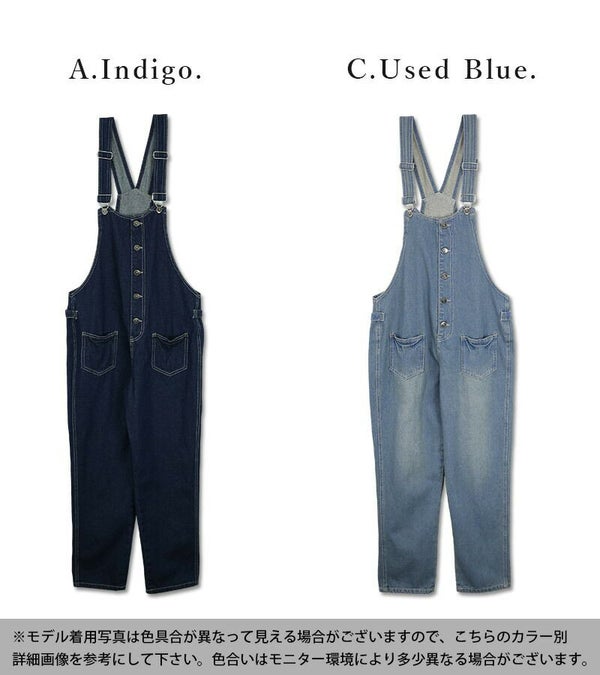 サロペット デニム レディース オーバーオール フロントボタンデニムサロペット 綿100% コットン100% 綿 コットン 春 夏 秋冬 ロングシーズン シーズンレス 着回し 重ね着 レイヤード デニムパンツ デニムサロペ オールインワン 大人カジュアル ナチュラル ルーズ ゆったり 体型カバー 大きいサイズ ユーズドブルー インディゴ andit_ and it_ andit ANDIT_ ANDIT あんどいっと アンドイット SS AW 新作 NEW カジュアル ナチュラル きれいめ 大人可愛い 大人女子 お洒落 トレンド シンプル ニュアンス M L LL 2L Mサイズ Lサイズ LLサイズ 2Lサイズ M~LL M-LL M-2L 楽ちん ラフ ぽっちゃり プチプラ ファッション レディースファッション ママ服 マタニティ 20 30 40 50 20代 30代 40代 50代