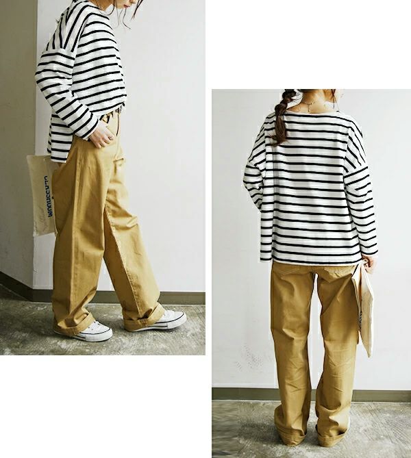 6. パンツ レディース セミワイド配色コットンストレートパンツ 【メール便対応可】