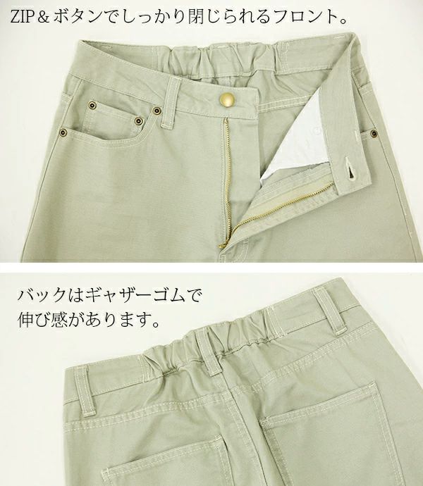 配色ステッチがさりげないお洒落ポイントでトレンド感溢れるセミワイドパンツ♪ パンツ レディース セミワイド配色コットンストレートパンツ 【メール便対応可】