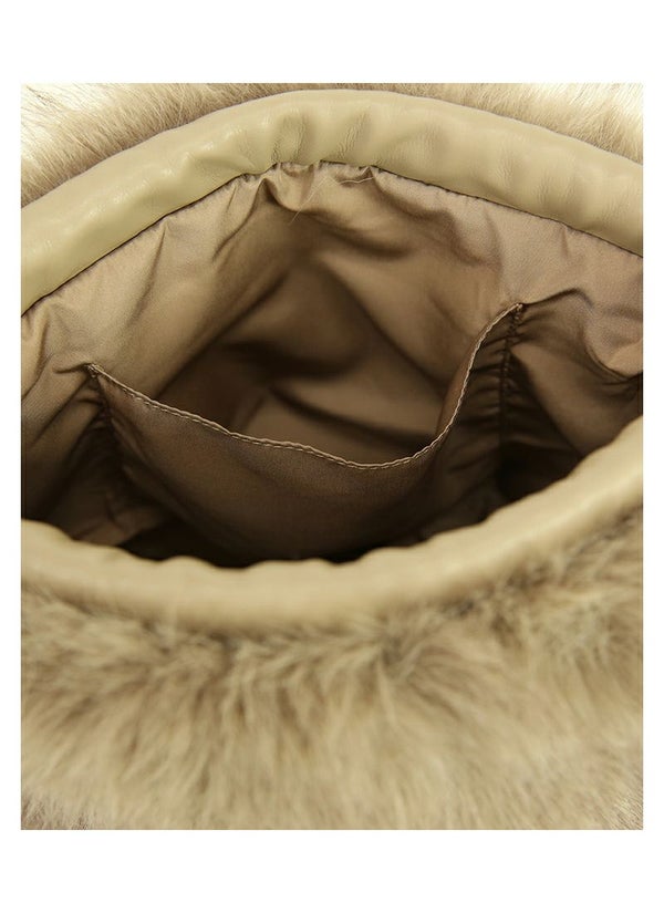 どんなコーデにも映えるフェイクファーバッグが登場!まるで本物のような柔らかさと光沢を持つフェイクファーは高級感があり、触れるたびに優しい感触が楽しめます。巾着型デザインで中身が出し入れしやすく、マチがあるのでデイリー使いにちょうどいいサイズ感!内側には小物を仕分けられるポケット付きです。