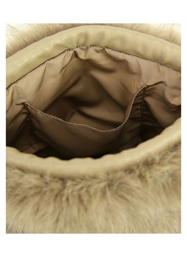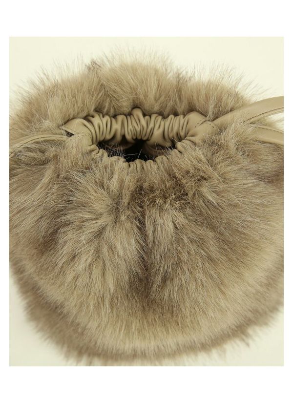 持つだけでぱっと華やかに!高級感のあるフェイクファーで上品な印象の巾着型バッグ。