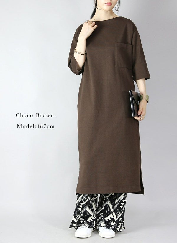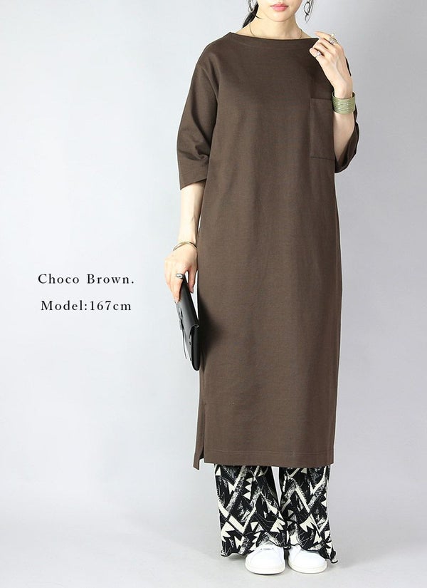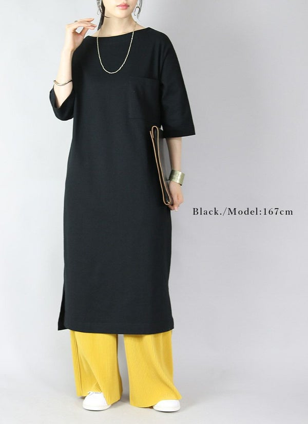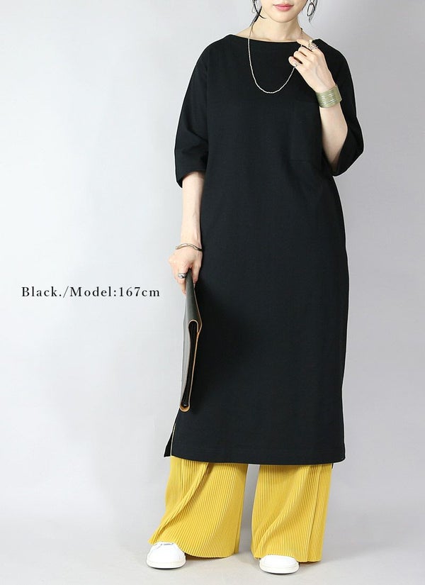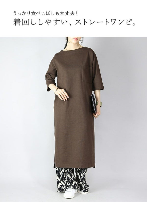 シミヘン加工フレンチバスクロングワンピース