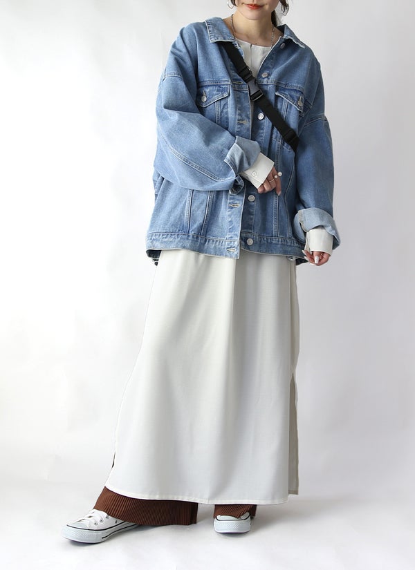 フェイクレイヤードくしゅくしゅシャーリングカットソー M L LL 3L 4L 【メール便対応可】