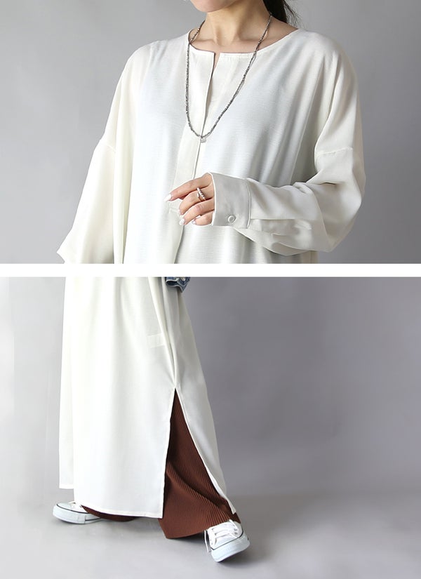 ロンt カットソー レディース トップス 長袖 Tシャツ レイヤード風 重ね着風 綿100% コットン100% ロング丈 ロングTシャツ フェイクレイヤードくしゅくしゅシャーリングカットソー 春夏秋冬 サイズ豊富 M L LL 3L 4L
