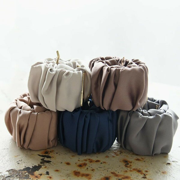 シャーリングデザインのヘアカフ。 パッチンとするだけでくるくる巻き付きしっかり留まります。