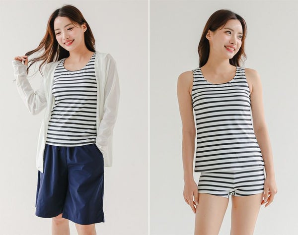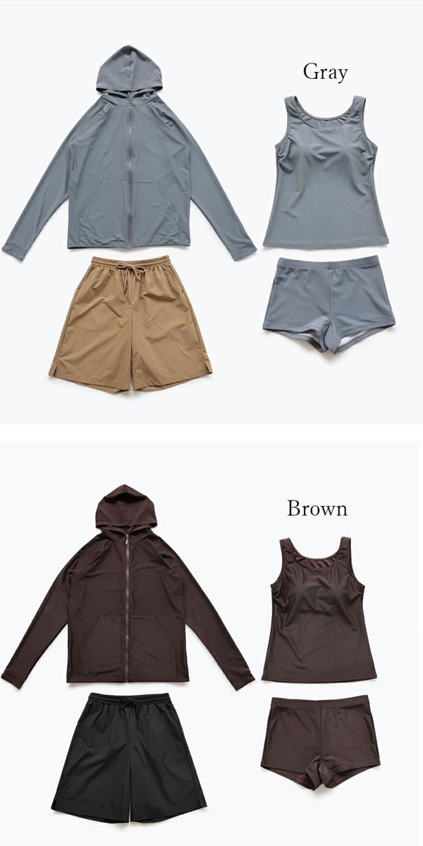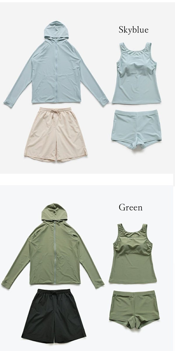 日焼け&冷え対策のラッシュガード付き!シーンによって組み合わせ自由の4点セット◎