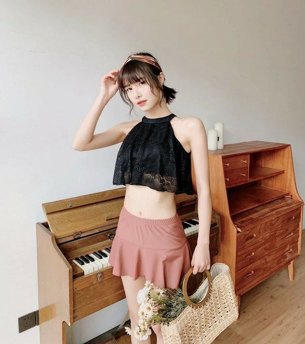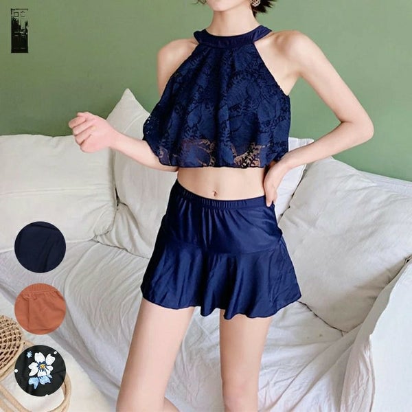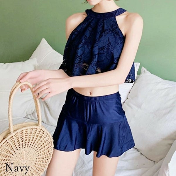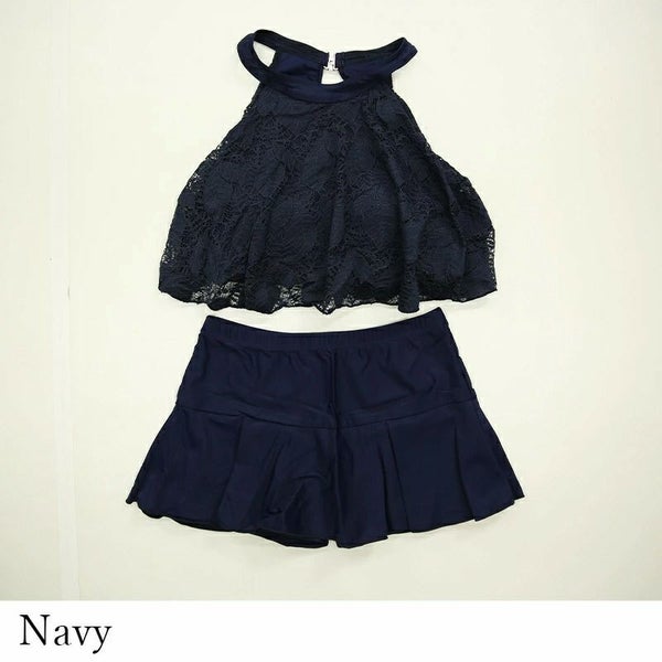 胸元もカバーしてくれるハイネックデザイン♪レーシーで大人可愛い上下2点セット!
