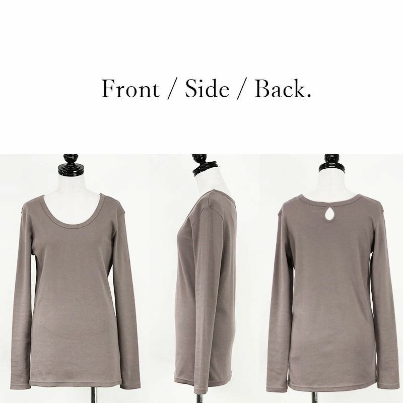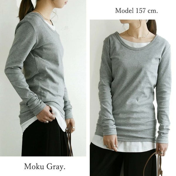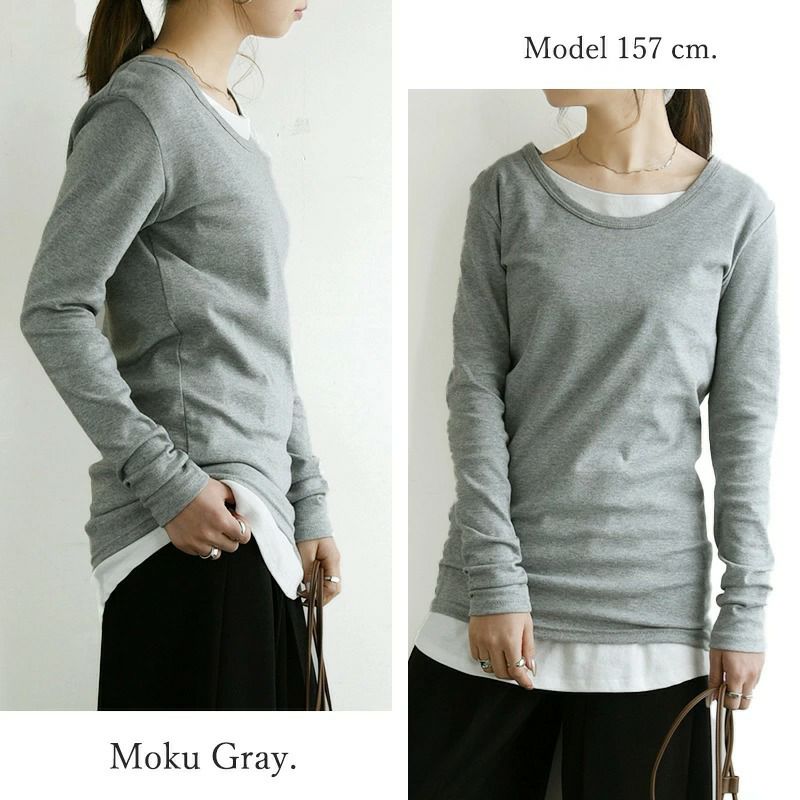 [Mサイズ]おしりがすっぽりと隠れるロング丈です。重ね着にはもちろん、透けない生地なので一枚でシンプルな着こなしも叶います♪しっかりとしたスムース生地は厚みがあるのに柔らかく、肌触りも良いのでシーズンレスで重宝しそう♪袖も少し長めでスリムなカタチなのでスタイルをキレイに見せてくれますよ◎