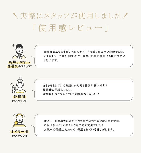 優れた保湿力で貼りと弾力のある肌へ導くミルク