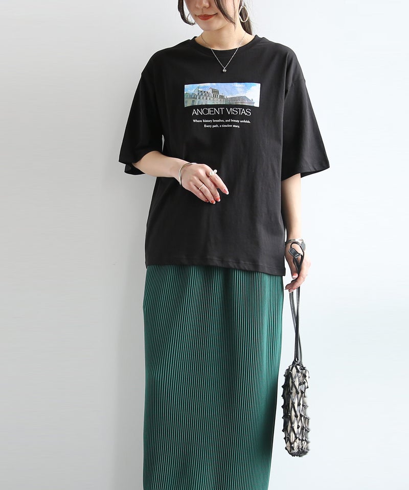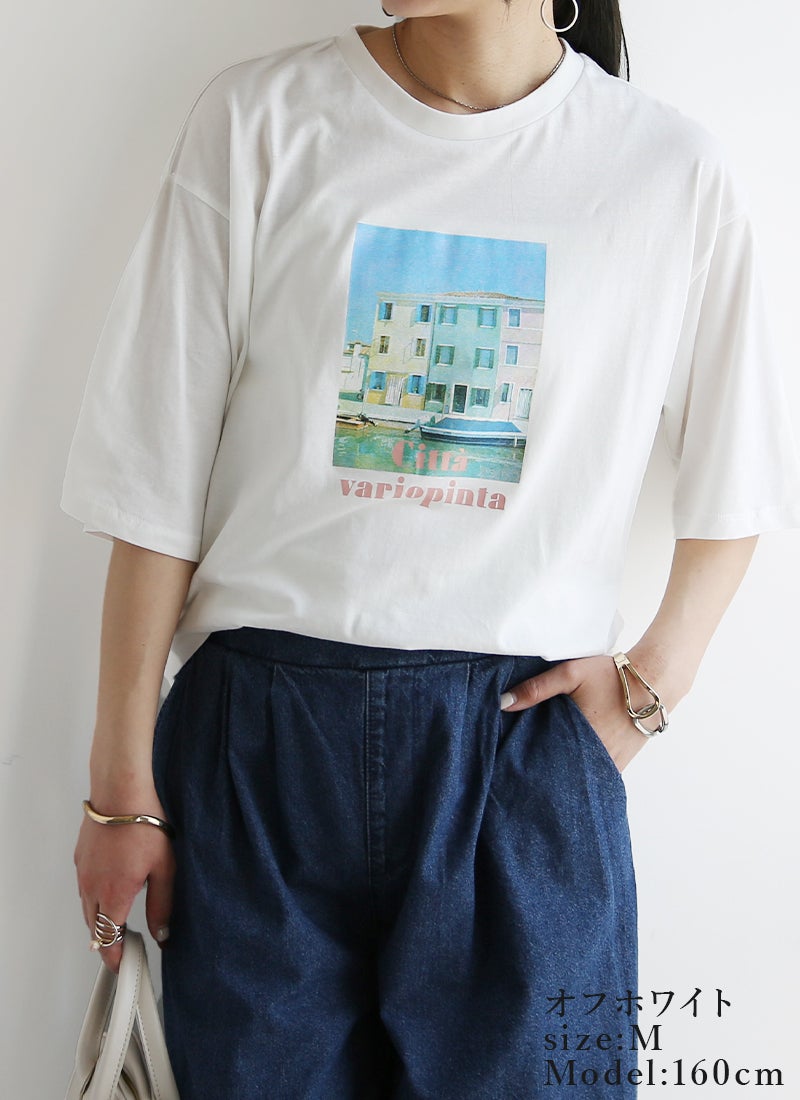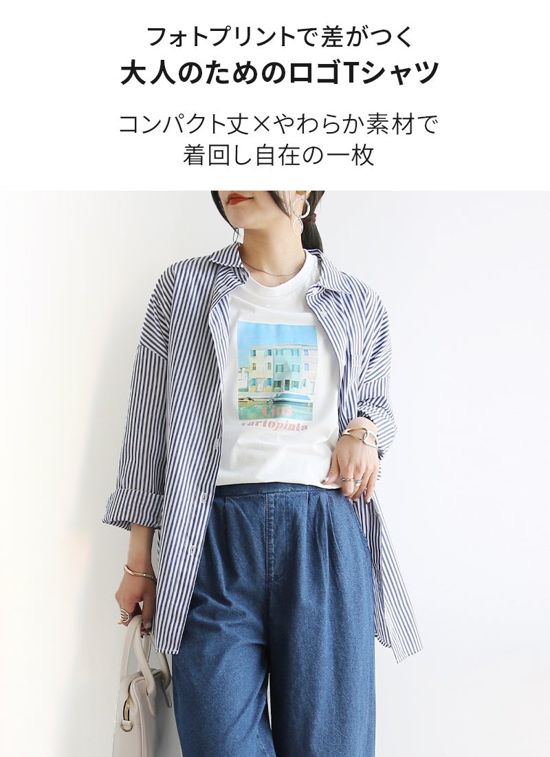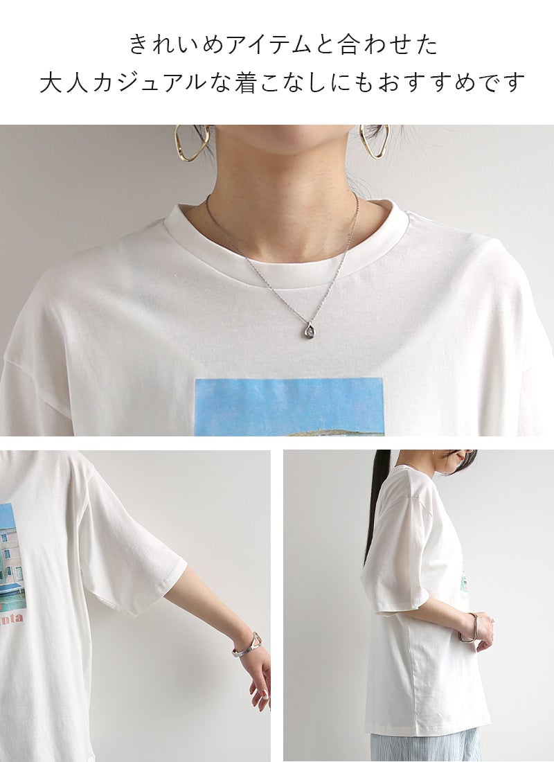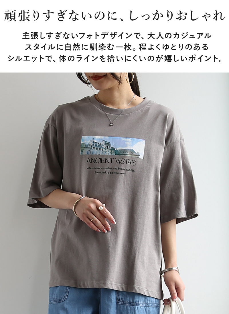 さりげないフォトプリントで大人っぽく着こなせる一枚。