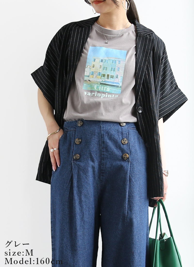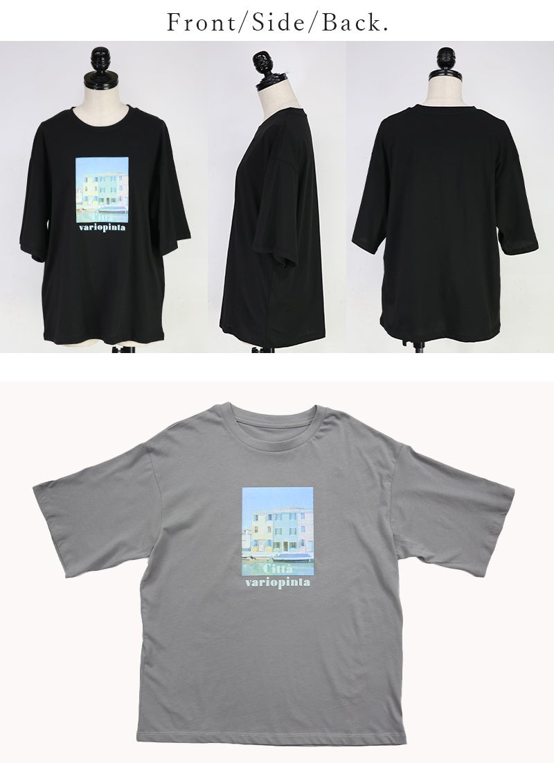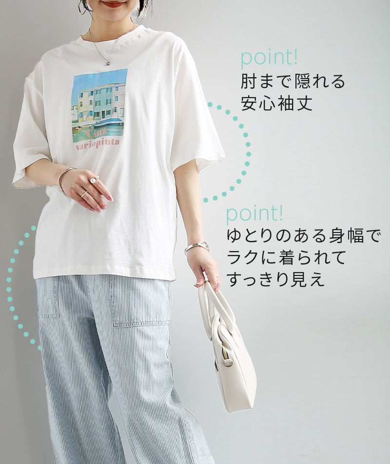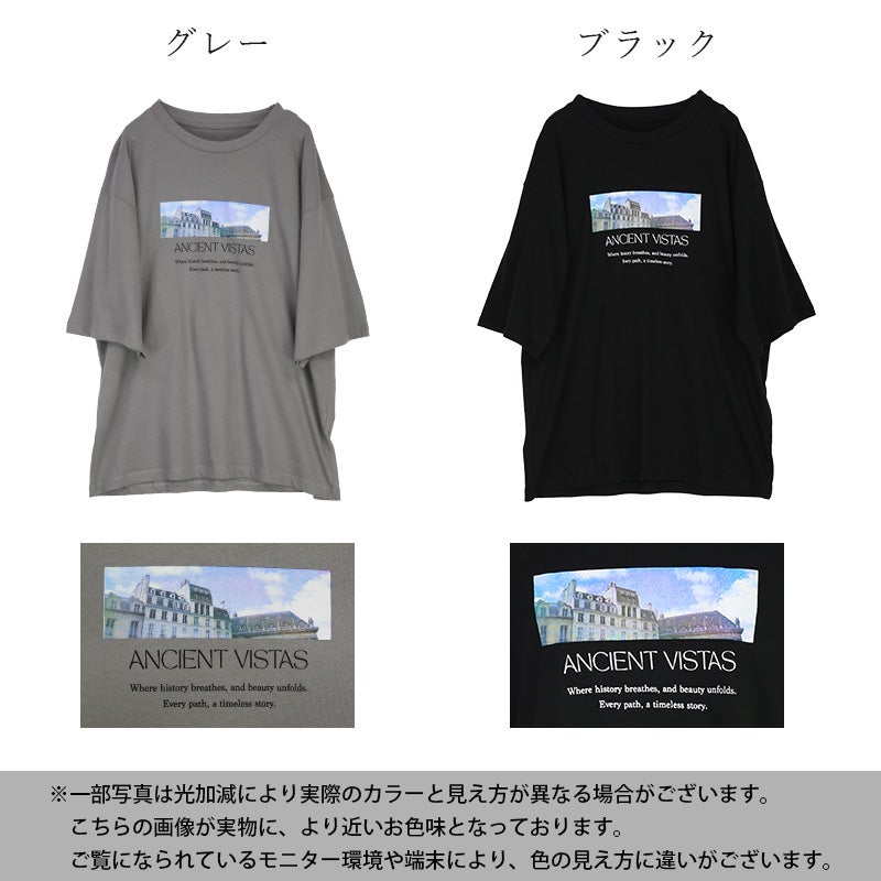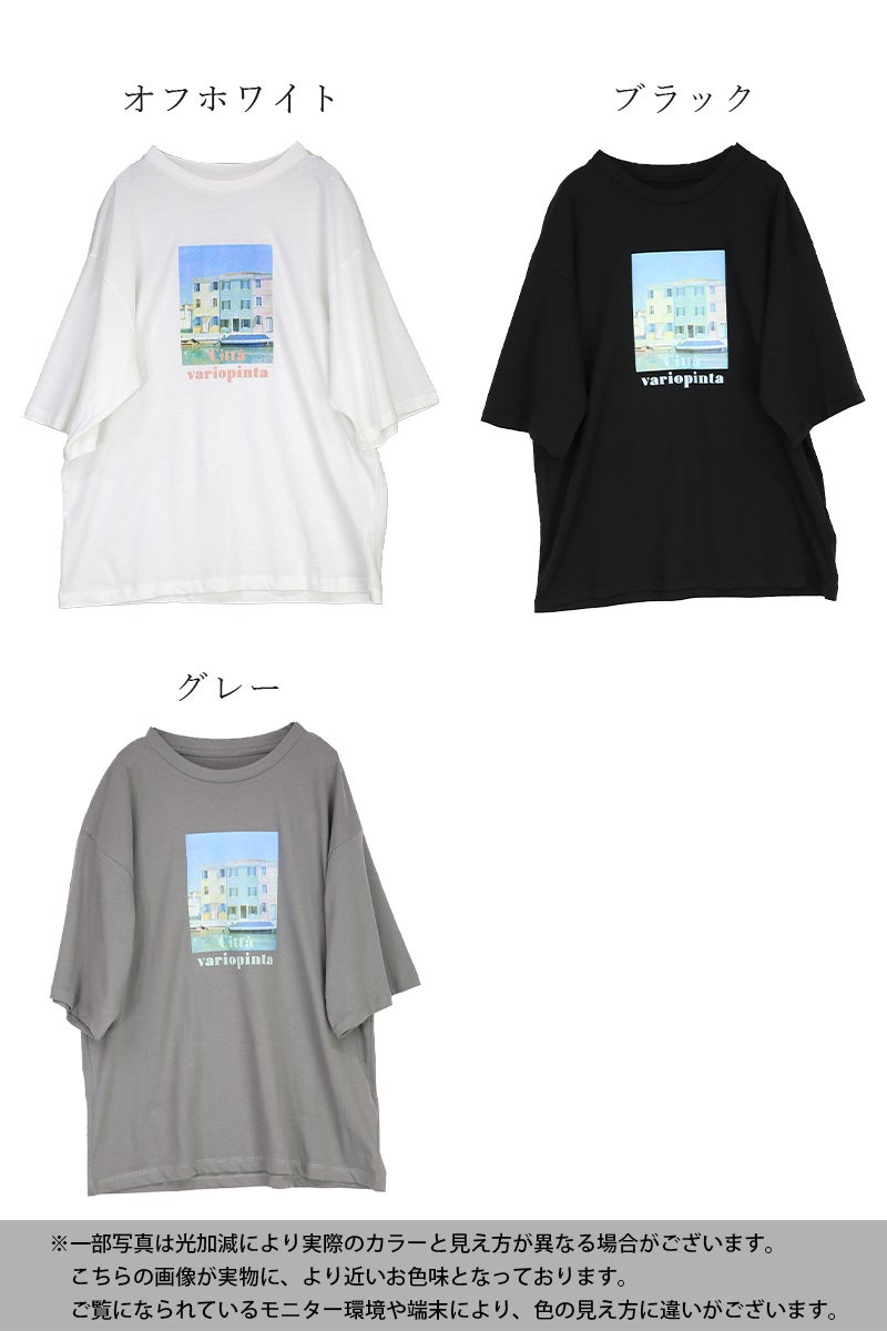 さりげないフォトプリントで大人っぽく着こなせる一枚。