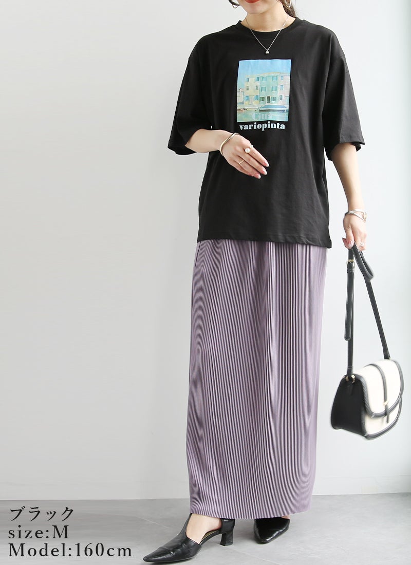 フォトプリントがコーデのアクセントになる一枚。